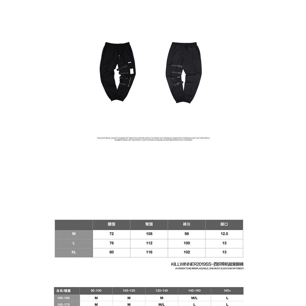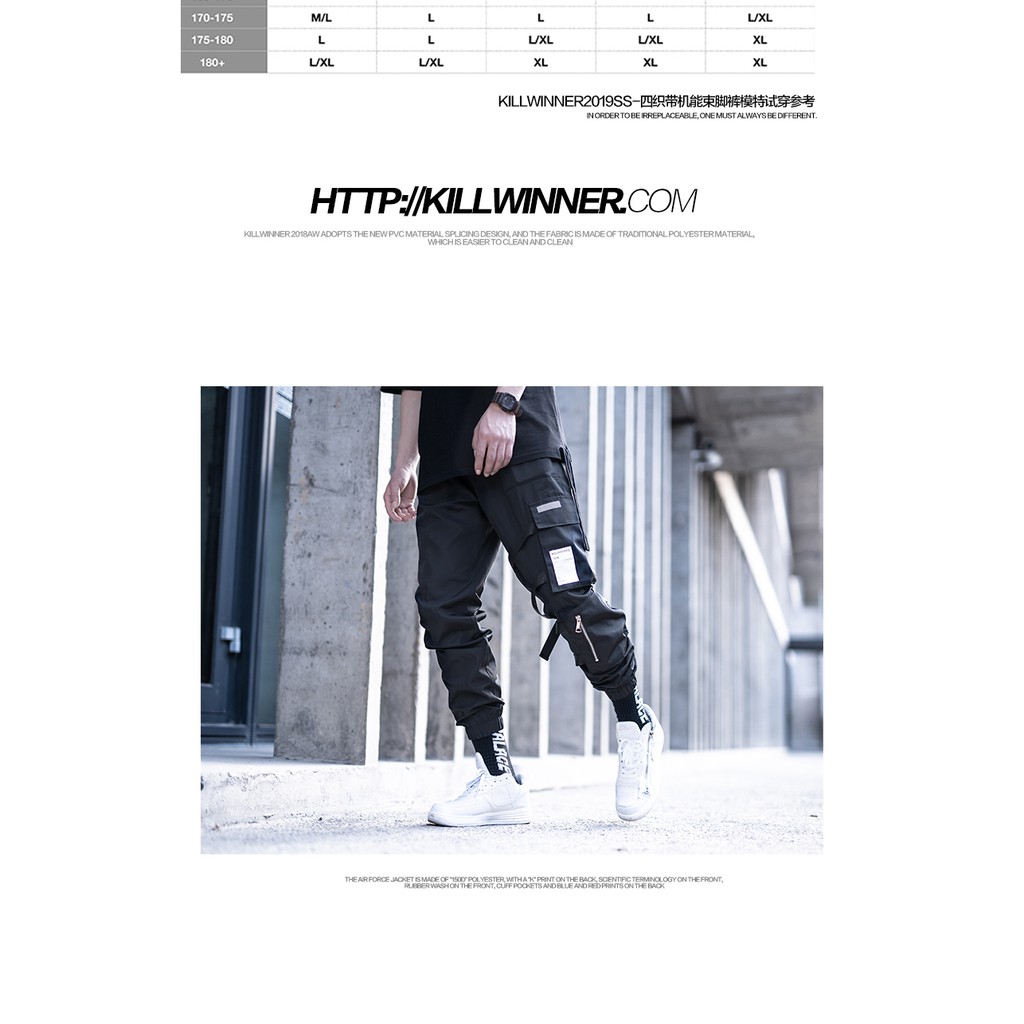 killwinner四織帶機能束腳工裝褲男潮牌寬松多口袋運動休閑褲國潮