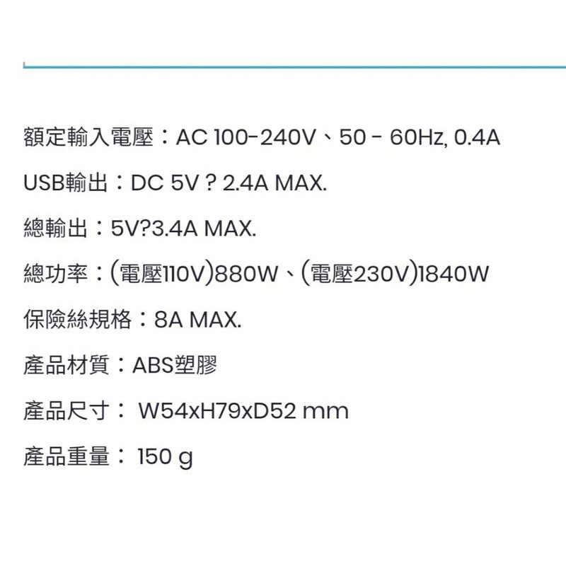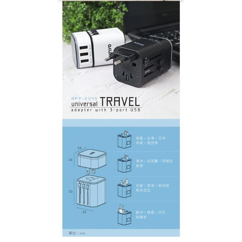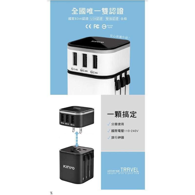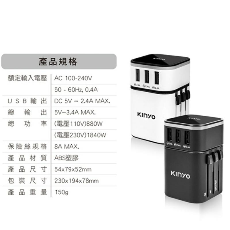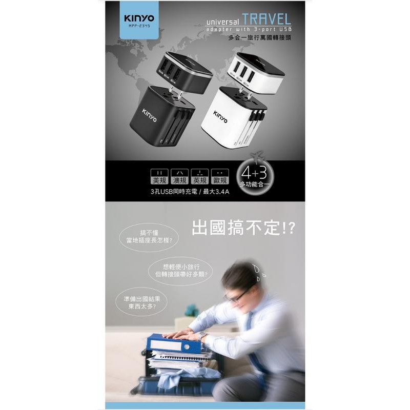 kinyo 3孔USB充電器 同時充電/最大3.4A MPP-2345 多合一旅行萬國轉接頭 安全鎖設計-【便利網】