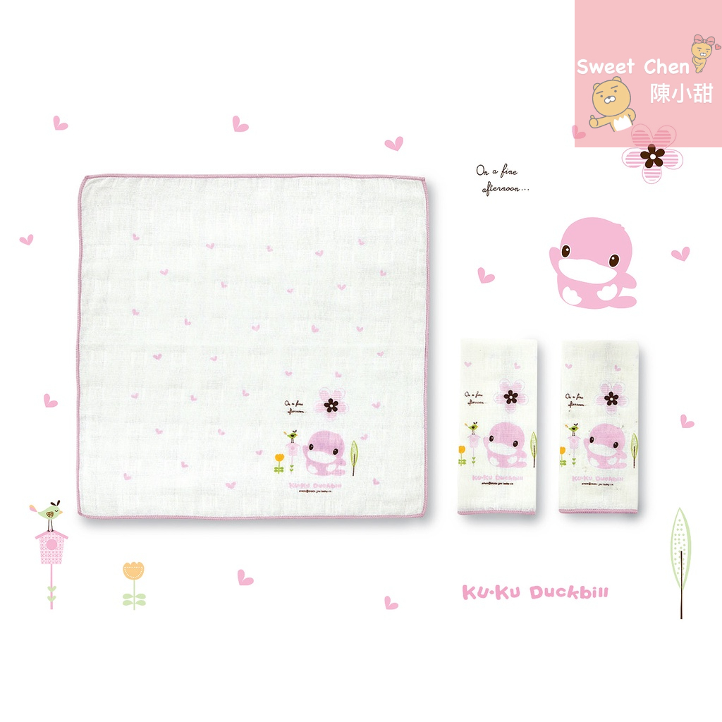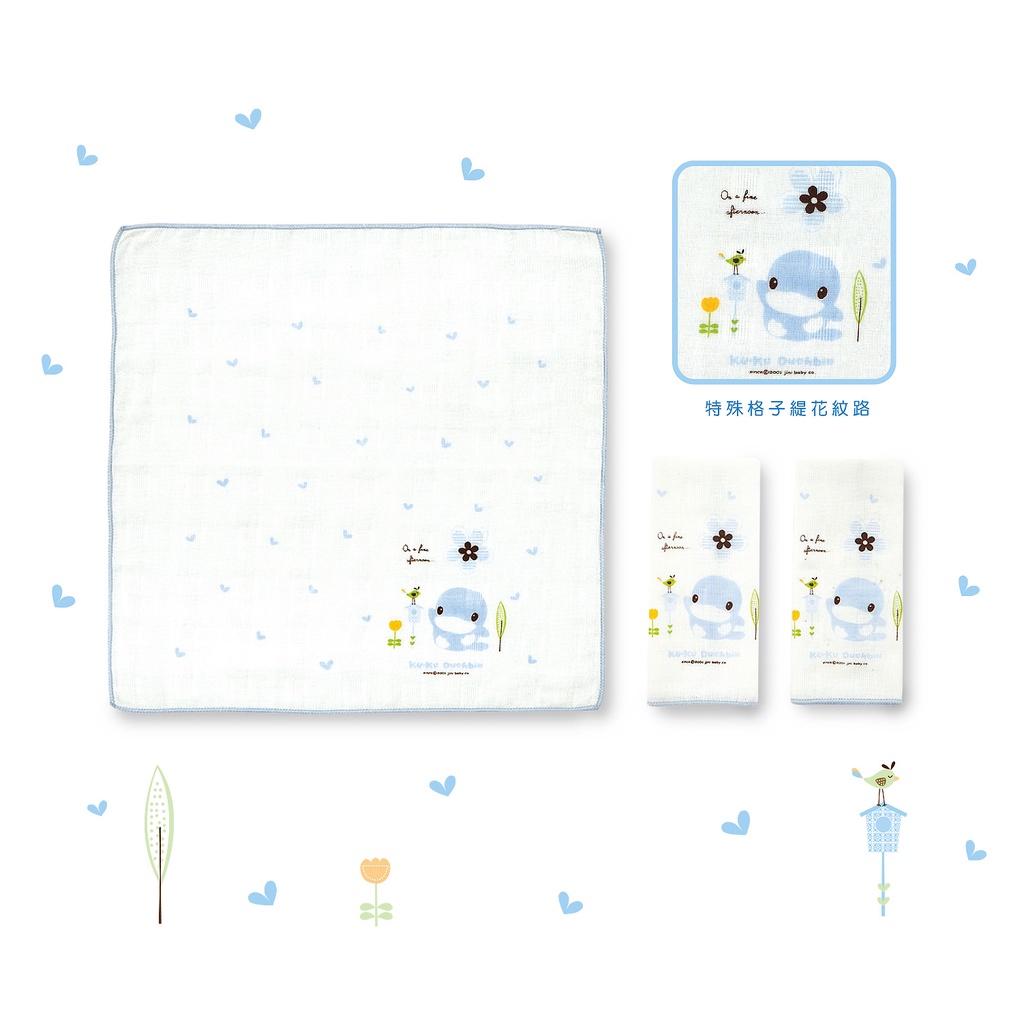 ku.ku 酷咕鴨 格子緹花紗布手帕 3入 (KU2383)❤陳小甜嬰兒用品❤