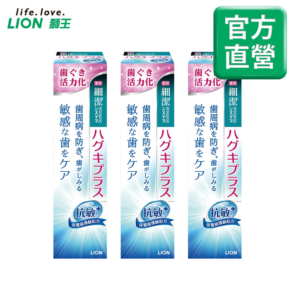 日本獅王LION 細潔適齦佳牙膏-修護plus/抗敏plus/淨白plus 3入組│台灣獅王官方旗艦店