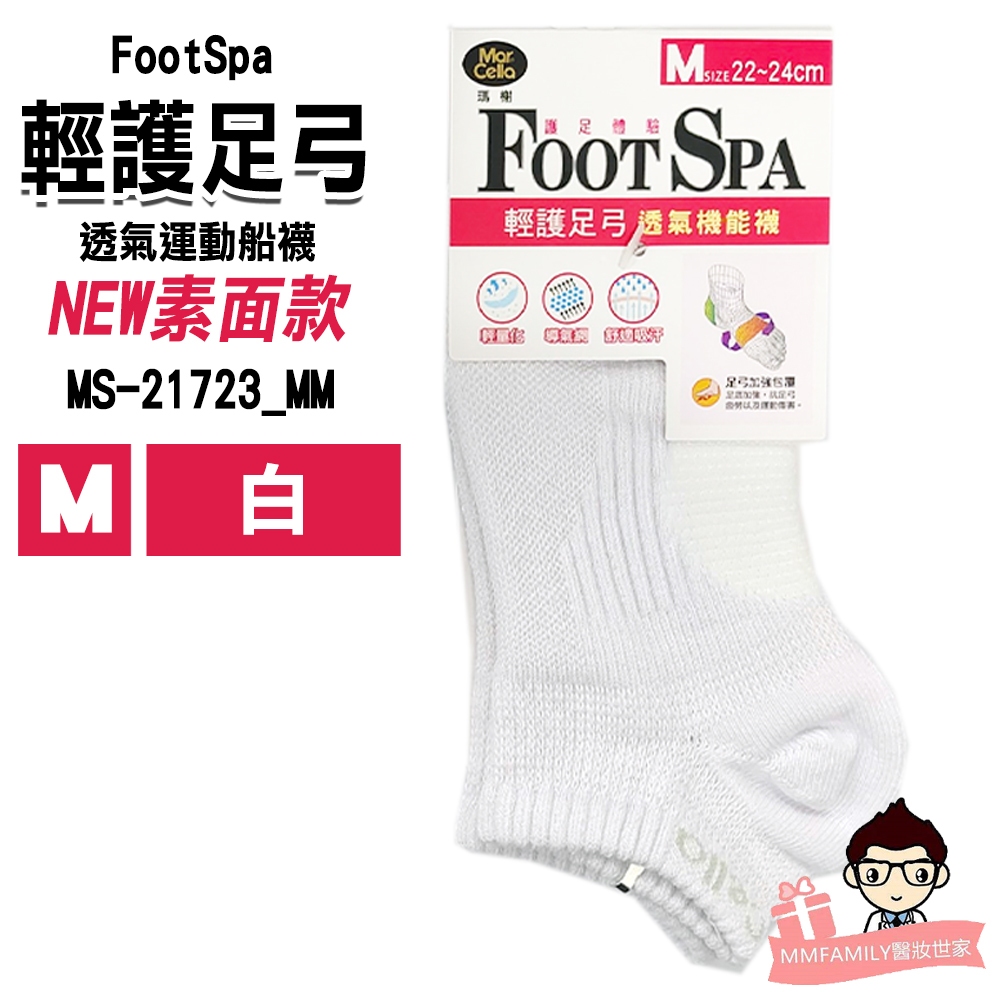 marcella 瑪榭 FootSpa MS-21723 輕護足弓透氣運動船襪 素面款 【醫妝世家】輕護 襪 21723