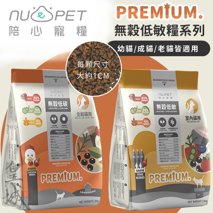 nu4PET 陪心寵糧 貓飼料 貓咪飼料 貓 無穀 低碳貓糧 貓糧 鮮雞野莓 海魚野梅 乾糧 天然無穀 陪心飼料