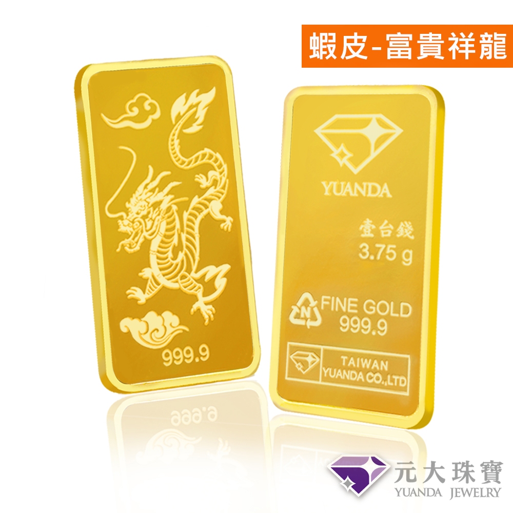 【元大珠寶】1台錢黃金9999純金認證金塊金條-獨家與白沙屯媽祖授權聯名(金重3.75公克)