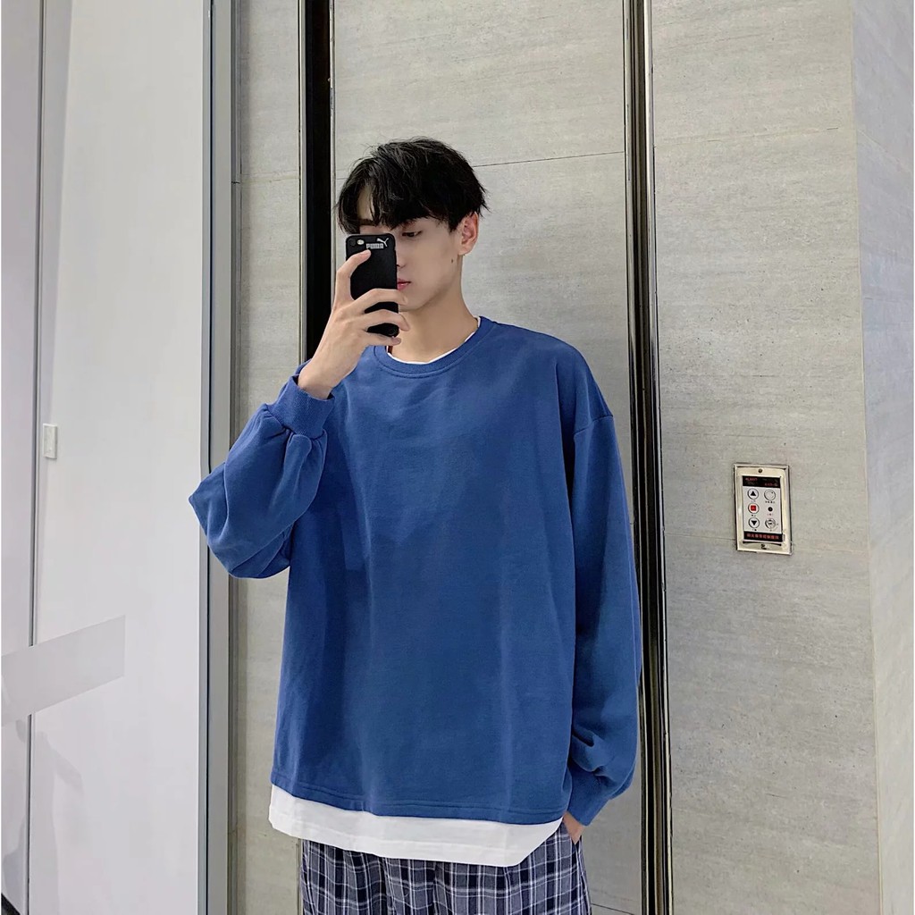 衛衣 現貨 9色入 M-2XL 帽T 大學T 素色 素面 ins秋冬寬鬆長袖帽T 假兩件休閒百搭學院風衛衣