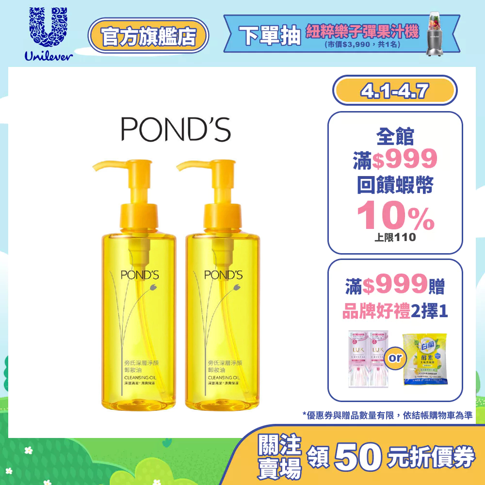 【Pond's 旁氏】官方直營 深層淨顏卸妝油175g (韓國製)(1入/2入組)