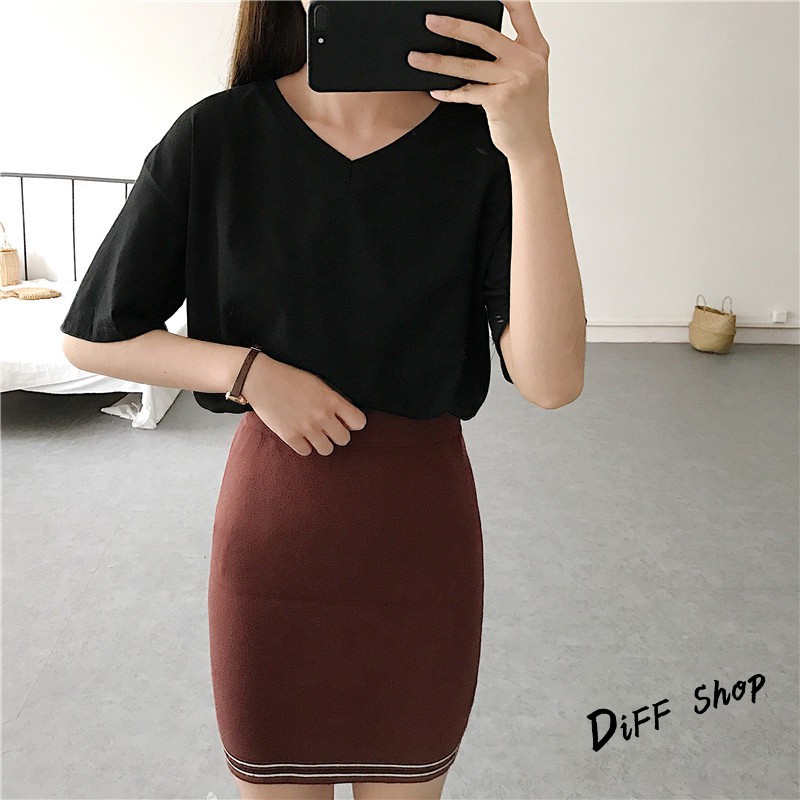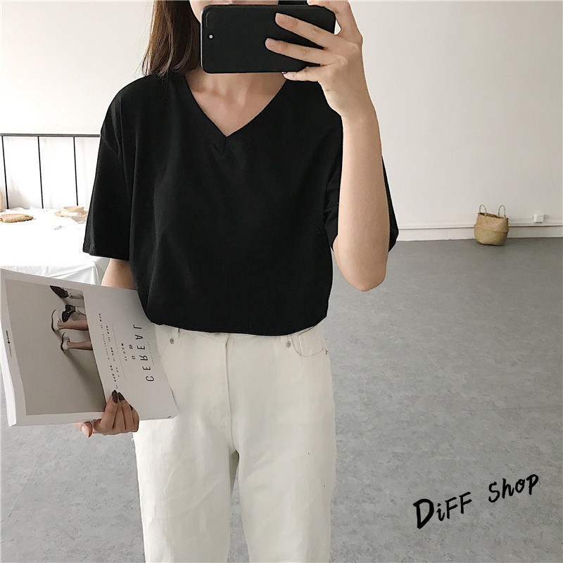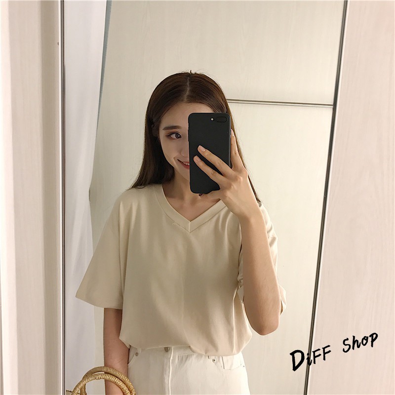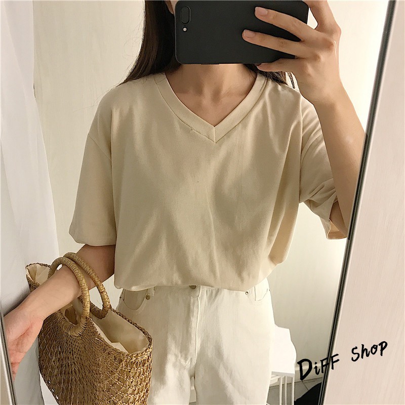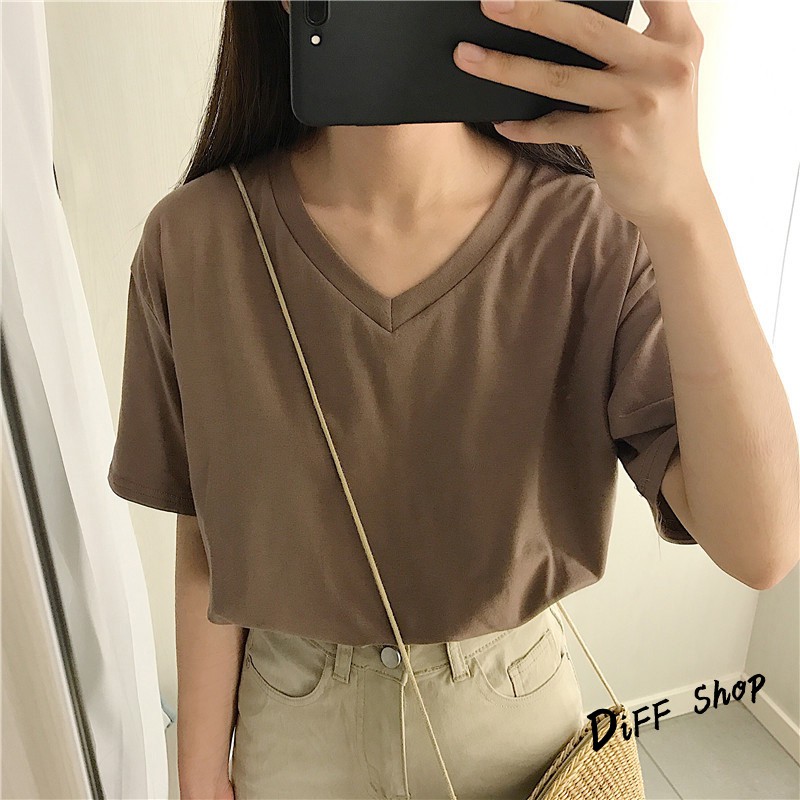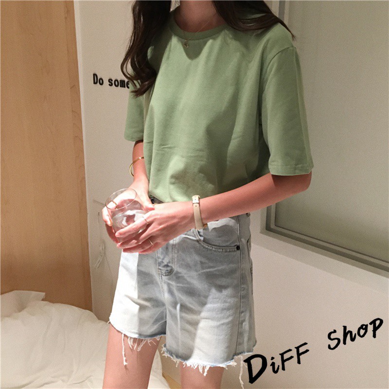 【DIFF】韓版復古色系圓領/V領短袖上衣 短袖t恤 女裝 t恤 衣服 寬鬆上衣 素T 睡衣 短袖上衣 【T187】