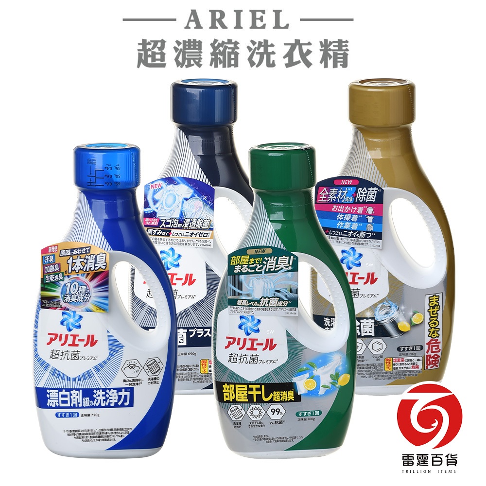 日本P&G ARIEL超濃縮洗衣精 超濃縮洗衣精 日本洗衣精 抗菌洗衣精 室內曬衣洗衣精 酸性洗衣精 金色抗菌 雷霆百貨