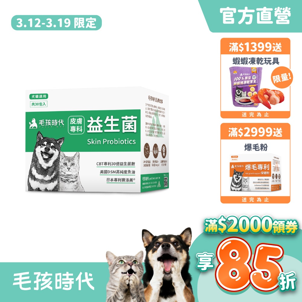 【毛孩時代】犬貓適用-寵物皮膚專科益生菌<30包/盒>幫助貓咪狗狗皮膚保健-30億益生菌數+高純度魚油-官方直營