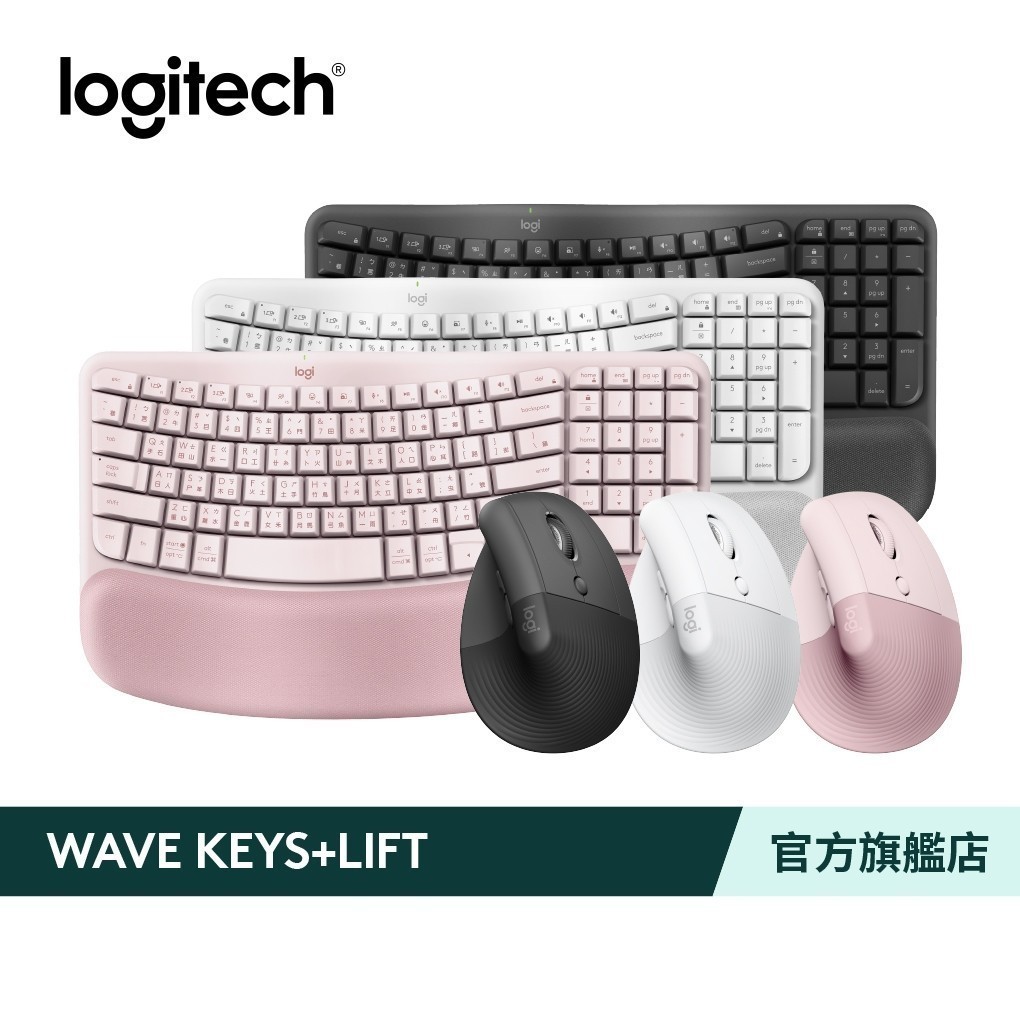 Logitech 羅技 Wave Keys人體工學鍵盤(WaveKeys)+LIFT 人體工學垂直滑鼠組合