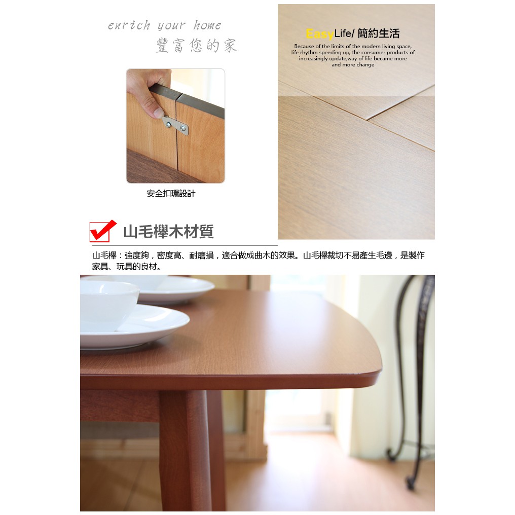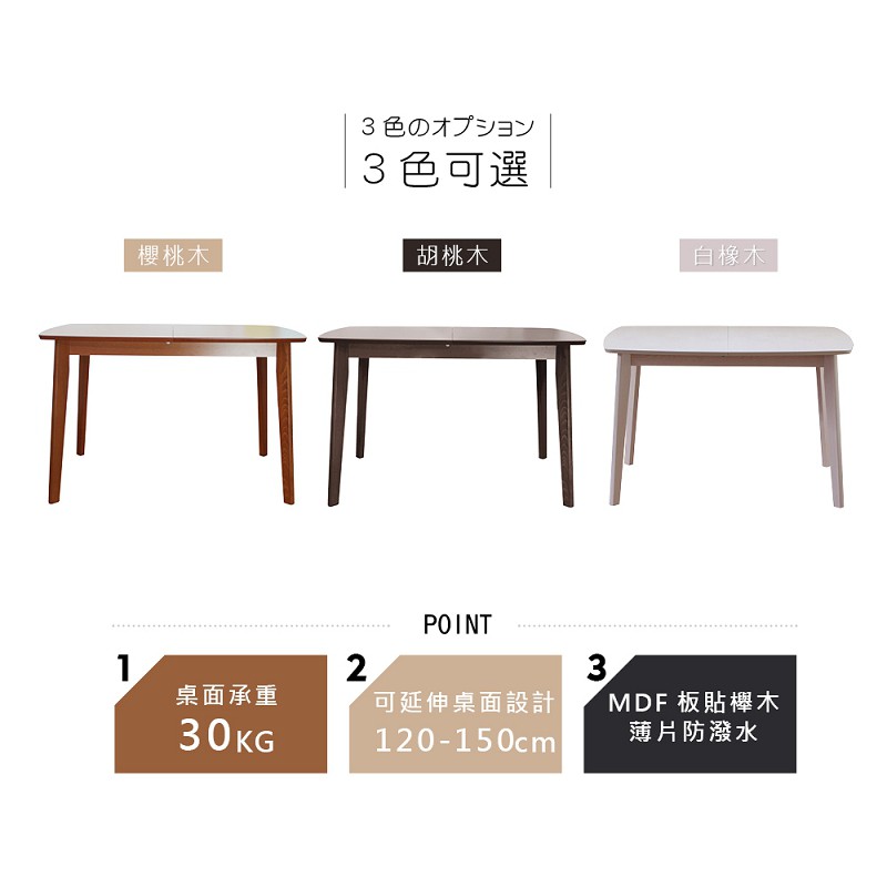 RICHOME 120-150CM可延伸餐桌 四人餐桌 延伸餐桌 實木桌腳 六人餐桌 TA405