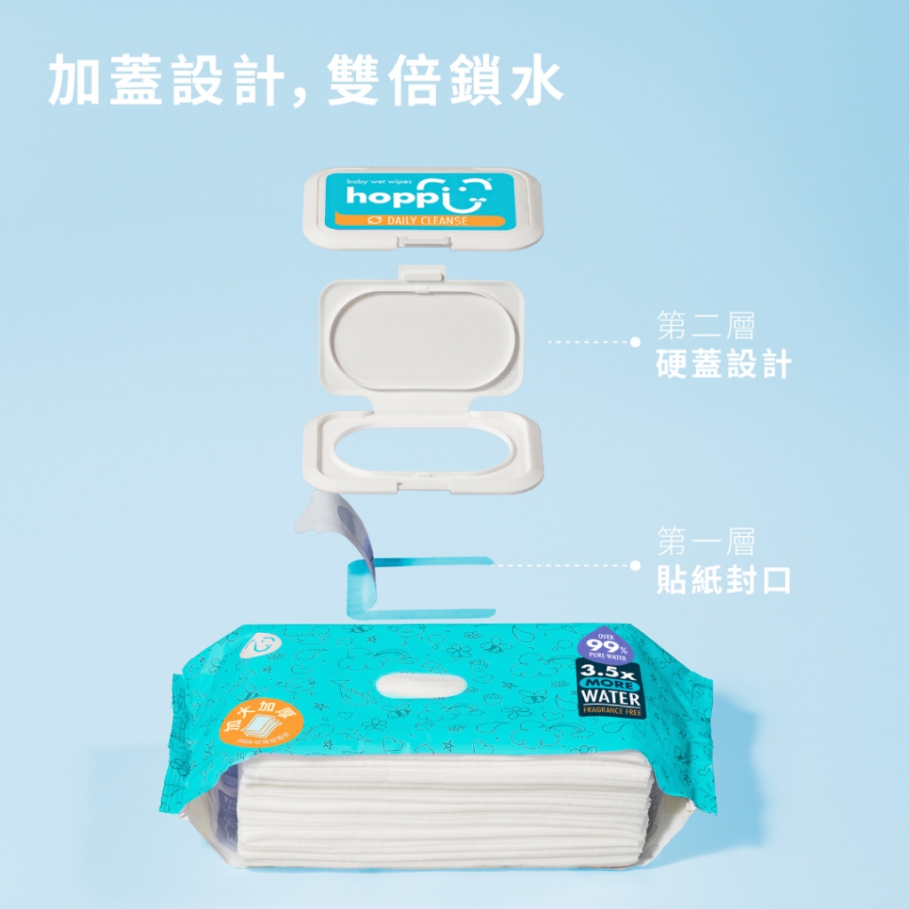 Hoppi嬰兒純水濕紙巾【加蓋款】80抽12包/16包箱購 敏感肌適用 純EDI水 無香料無酒精