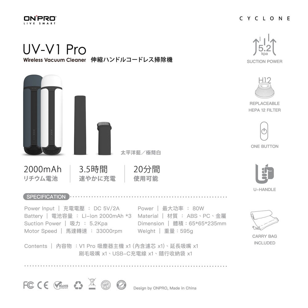 ONPRO UV-V1 Pro二代 USB-C充電式 迷你手持無線吸塵器 【福利品】