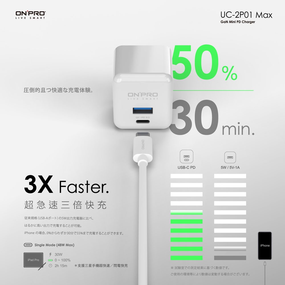 ONPRO UC-2P01 MAX GAN 48W 氮化鎵超急速PD充電器