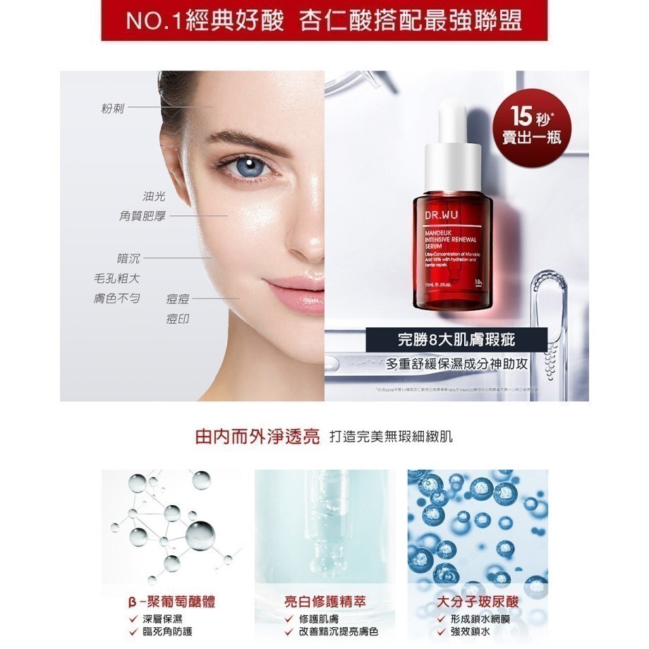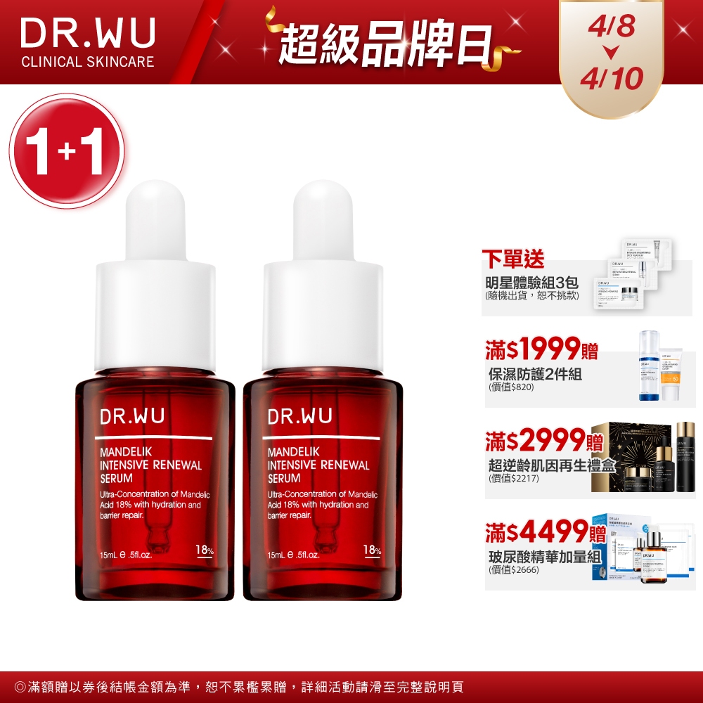 DR.WU 杏仁酸亮白煥膚精華18% 15ML(小紅瓶)(組)