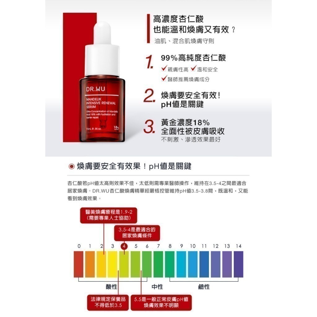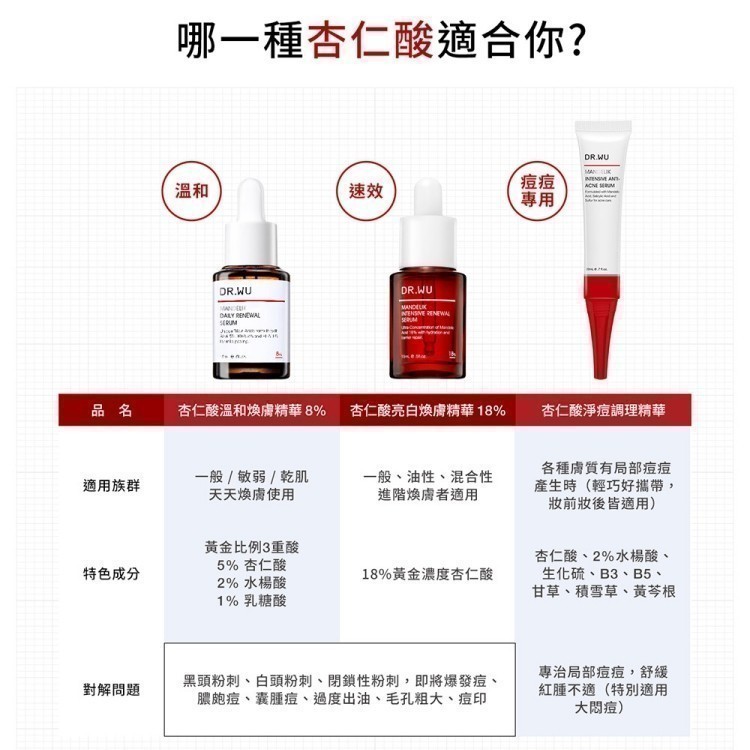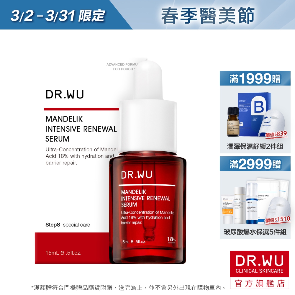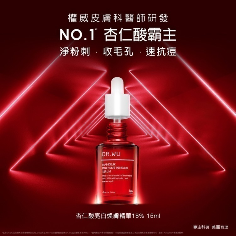 DR.WU 杏仁酸亮白煥膚精華18%15ML(小紅瓶)