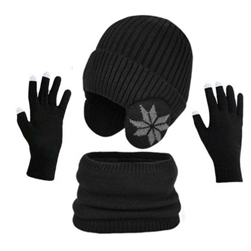 3 件裝無簷小便帽圍巾手套套裝冬季保暖針織骷髏帽男式女式