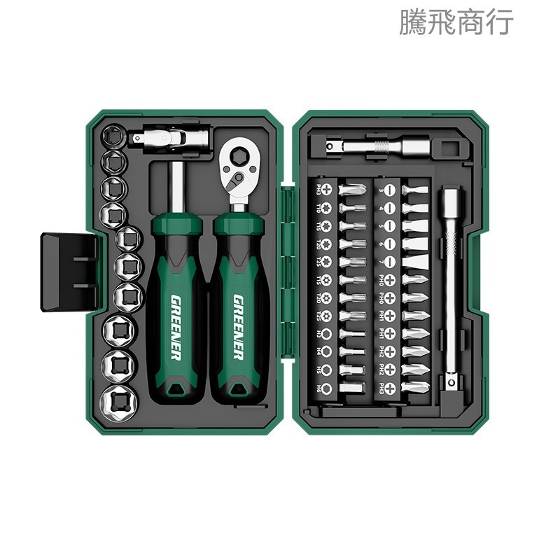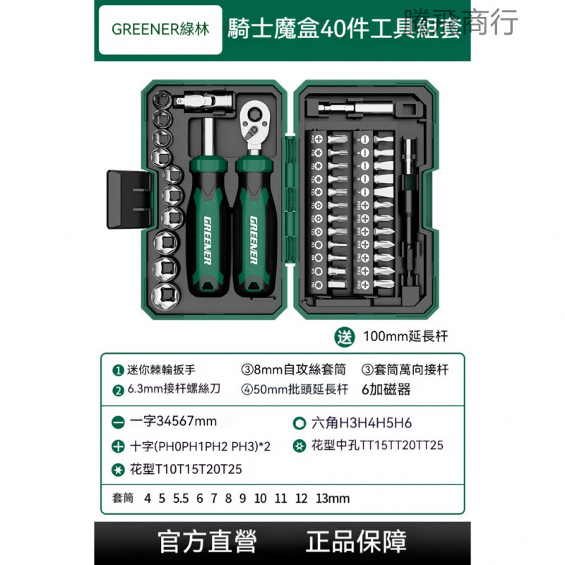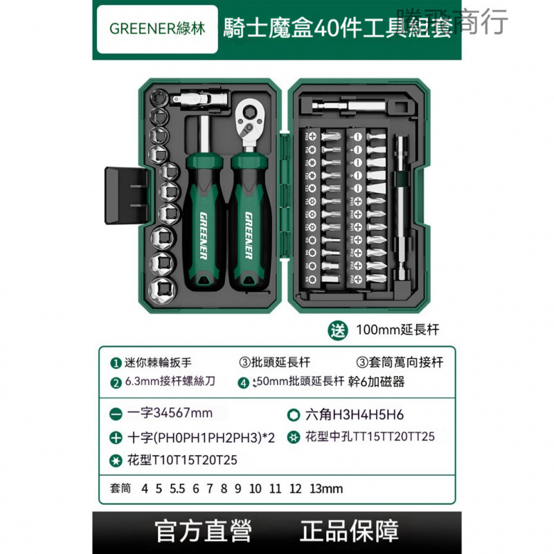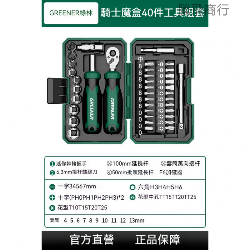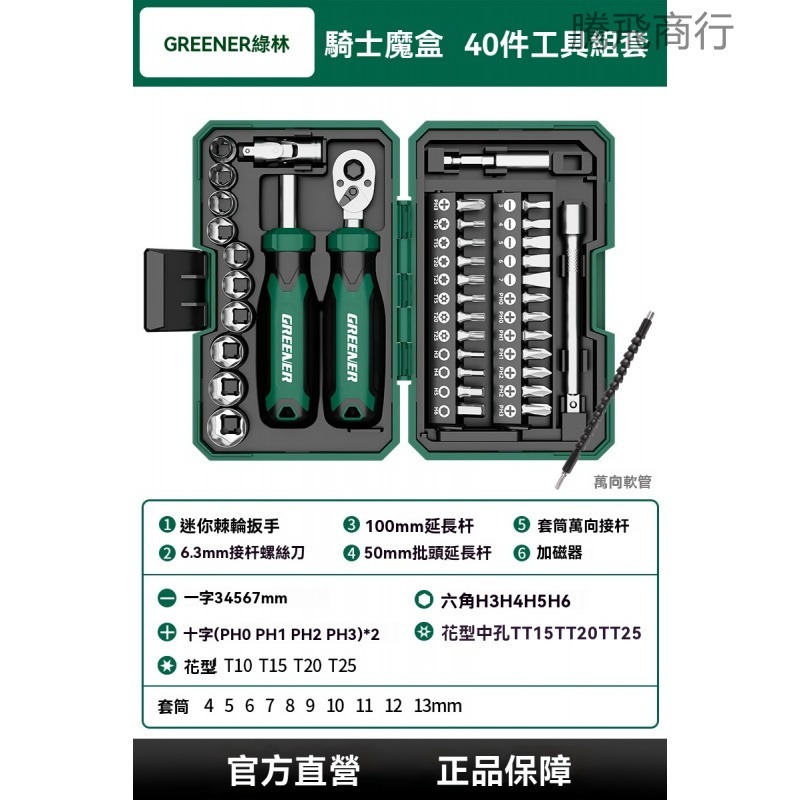 台湾出货/綠林【騎士魔盒】40件套筒螺絲刀套裝 組合小型棘輪 一字十字工具 批頭多功能
