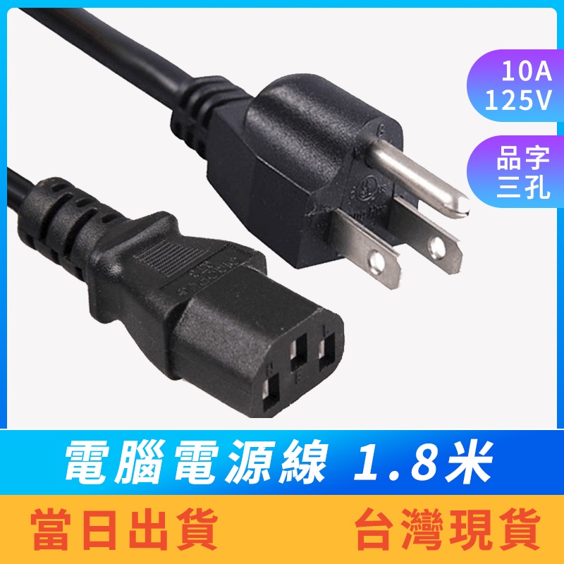 【現貨免運】電腦電源線 主機電源線 三孔電源線 品字電源線 電源線 電腦 工業電腦 10A 125V 1.8米