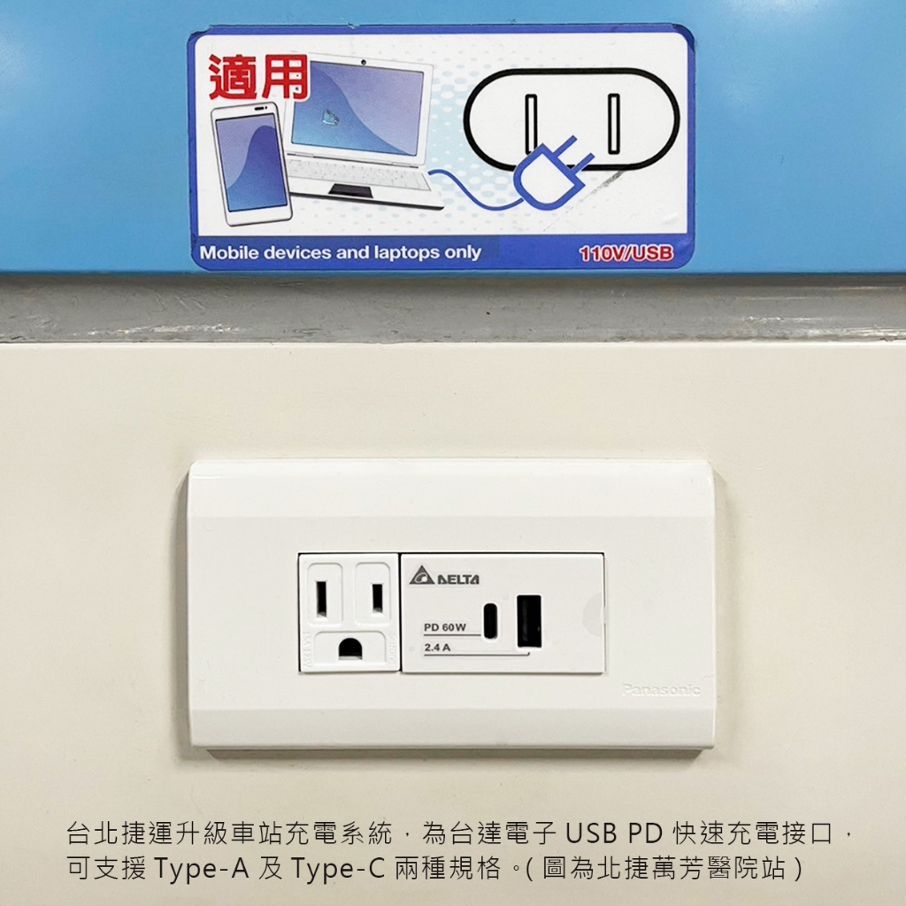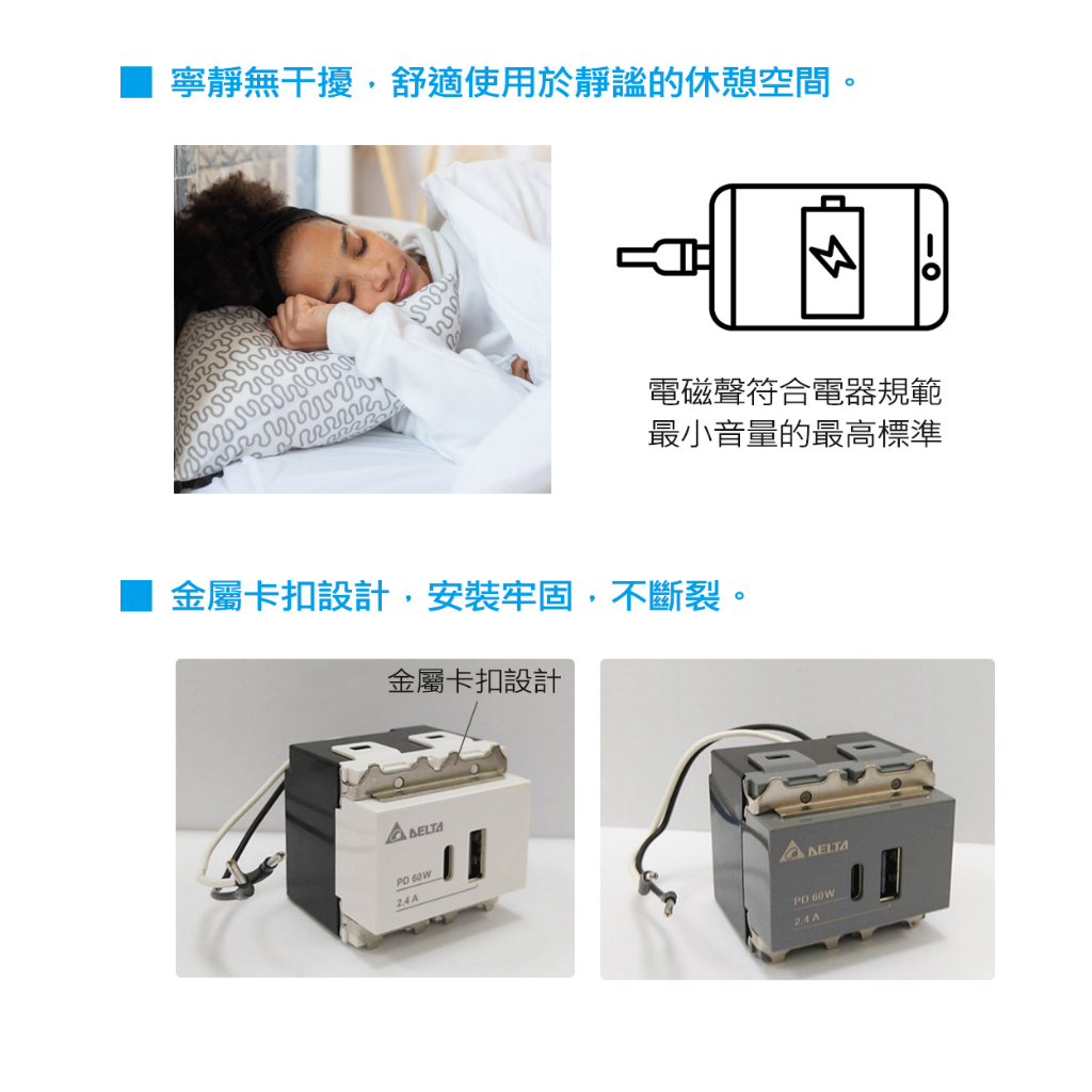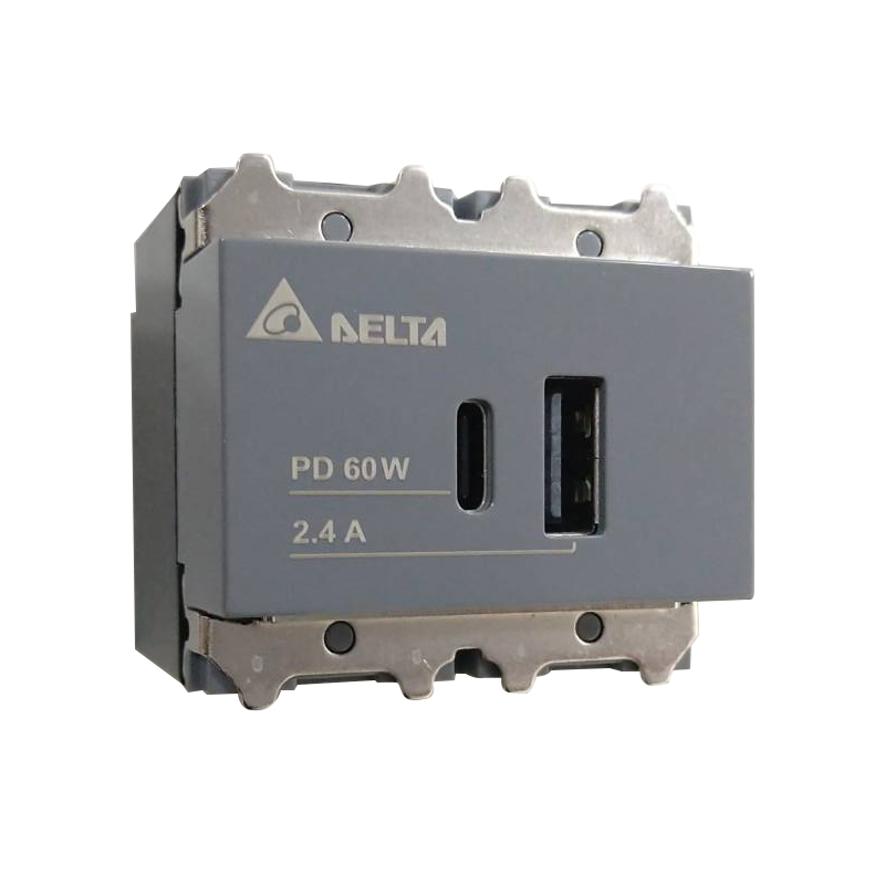 【台達Delta】埋入式 60W USB A+C PD充電插座/Type C插座/台達電快充/樹榮電工經銷/北捷中捷指定