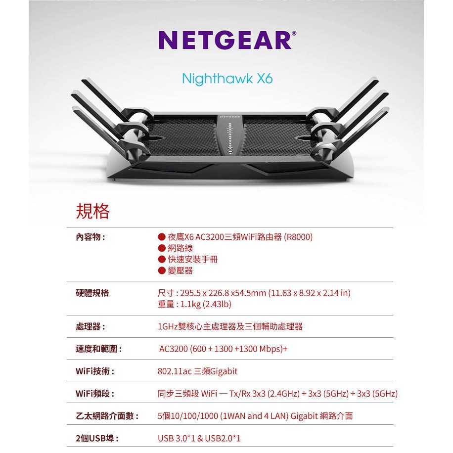 Netgear 夜鷹 X6 Nighthawk R8000 11ac 3200M極速 WIFI無線寬頻分享器 路由器
