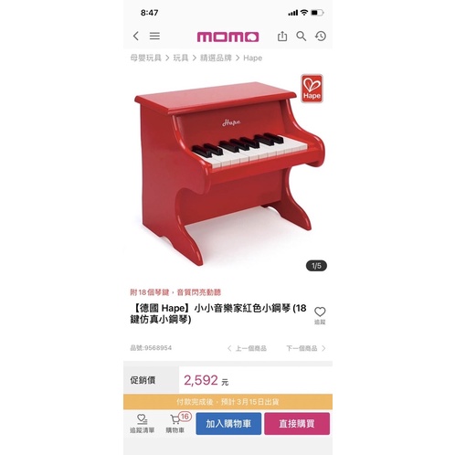 德國Hape小小音樂家小鋼琴( 18鍵仿真小鋼琴)