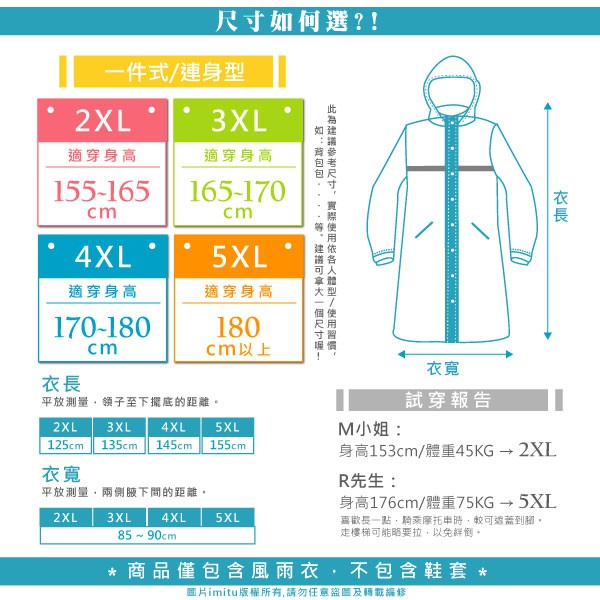 /台灣現貨/ JUMP 前開素色連身休閒風雨衣(5XL 加大尺寸)JP1991