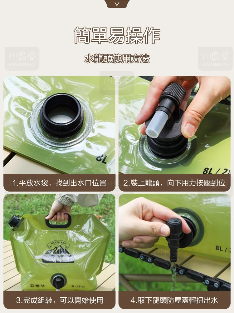 隔日到店 8L 儲水袋 旅行水袋 露營儲水袋 水袋 露營水袋 塑料袋 折疊水袋 旅行 蓄水袋 裝水袋 【川島屋】台灣現貨