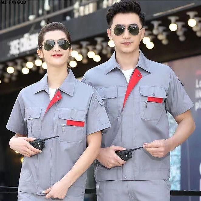 工作服工裝衣【優質】防水夏季短袖工作服套装单件男士薄款透气耐磨汽修机修厂服定制劳保服