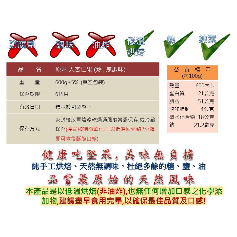 杏仁果600g (熟./無調味/低溫烘焙非油炸)*100%天然無調味,無添加其他化學物☆ mami的魔法廚房