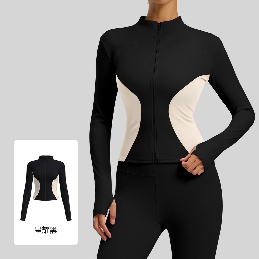 拚色修身顯瘦瑜伽服外套女跑步運動健身外套