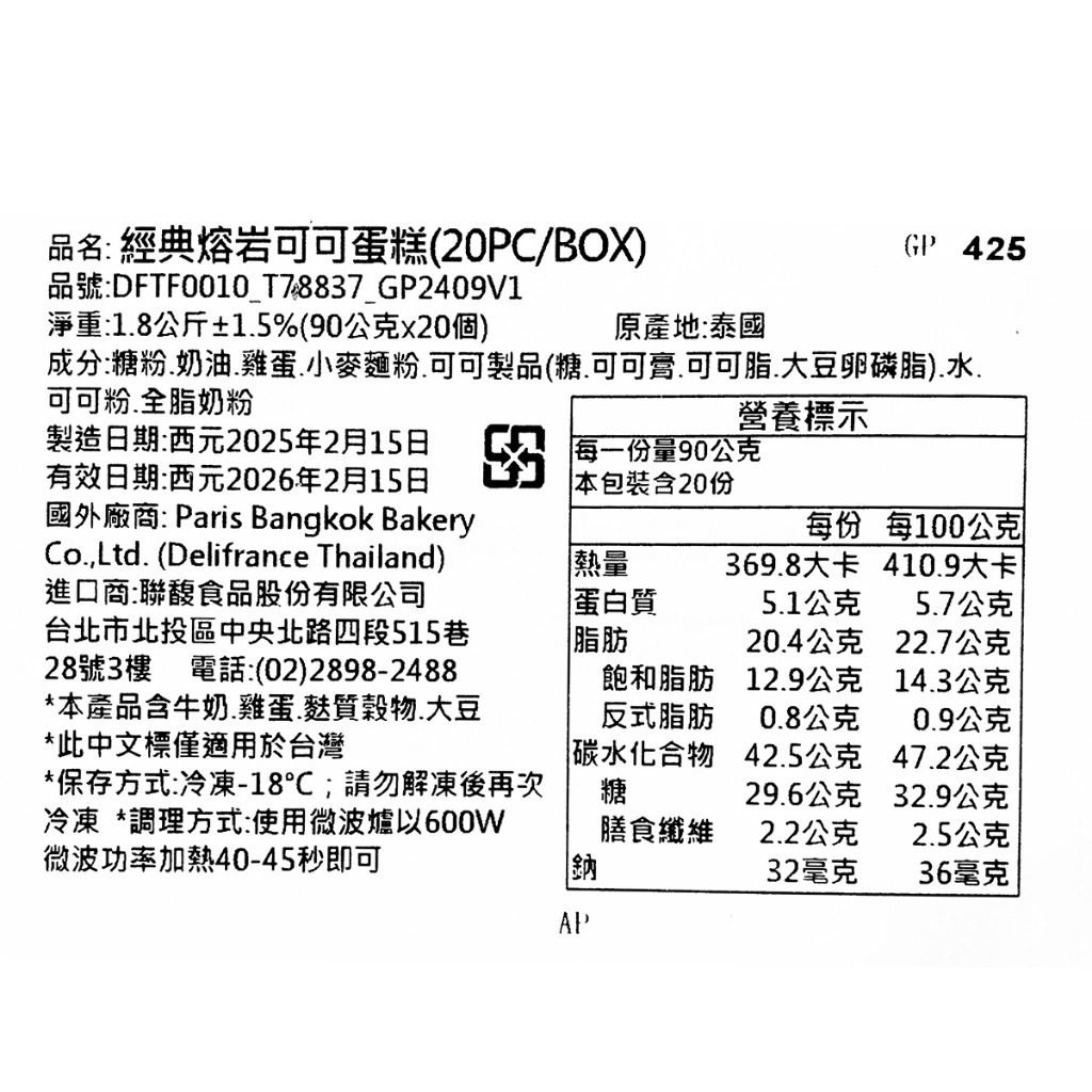 【肥麥莉】經典熔岩可可蛋糕 熔岩巧克力蛋糕 每盒20入