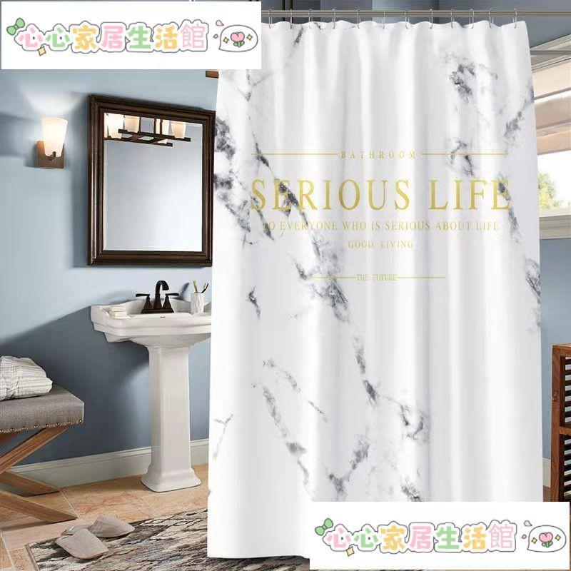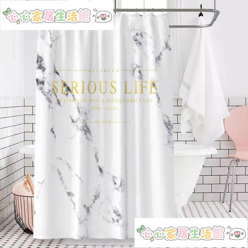 浴室門簾 免打孔窗簾 防水浴簾 折疊浴簾 北歐大理石紋防水浴簾加厚防水防黴免打孔隔斷淋浴房窗簾心心