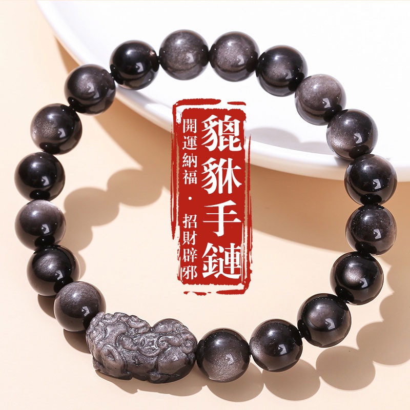 天然黑曜石手鍊 開光貔貅手鍊 金曜石手鍊 貔貅手串 銀曜石手串 串珠手鍊 本命年招財手鍊 開運手鍊 辟邪手鍊