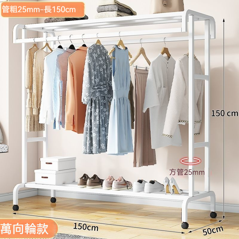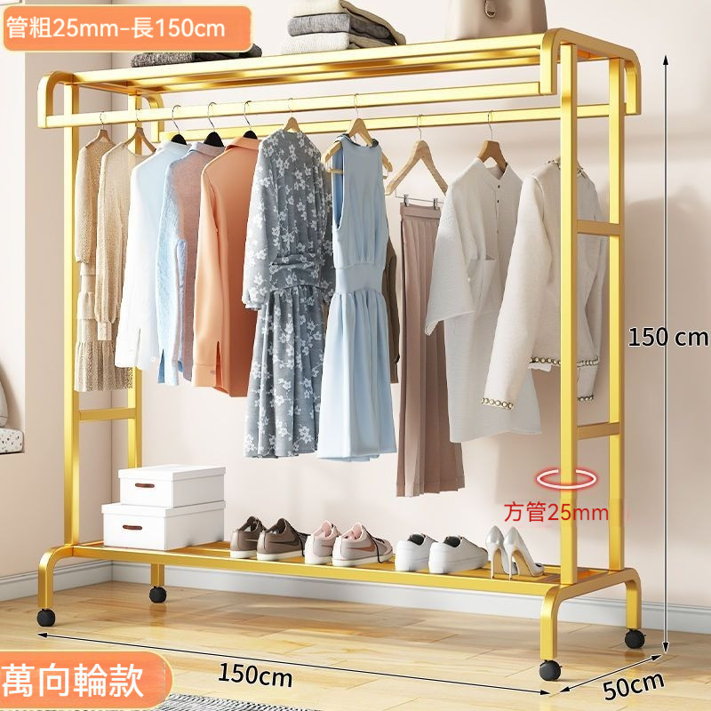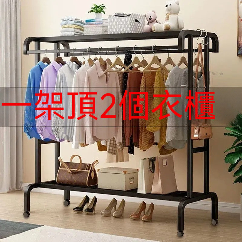 ⚡ 免運 ⚡ 衣櫃 吊衣架 曬衣架 現代簡約風耐重落地衣架 衣帽架 簡易晾衣架 多功能附輪移動式 層架臥室落地晾衣架曬