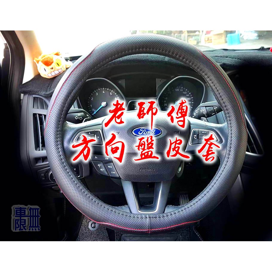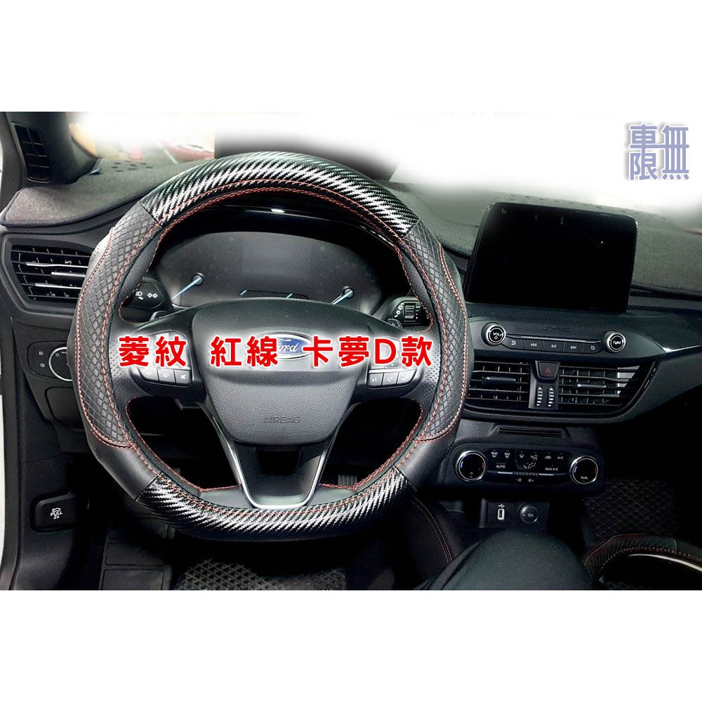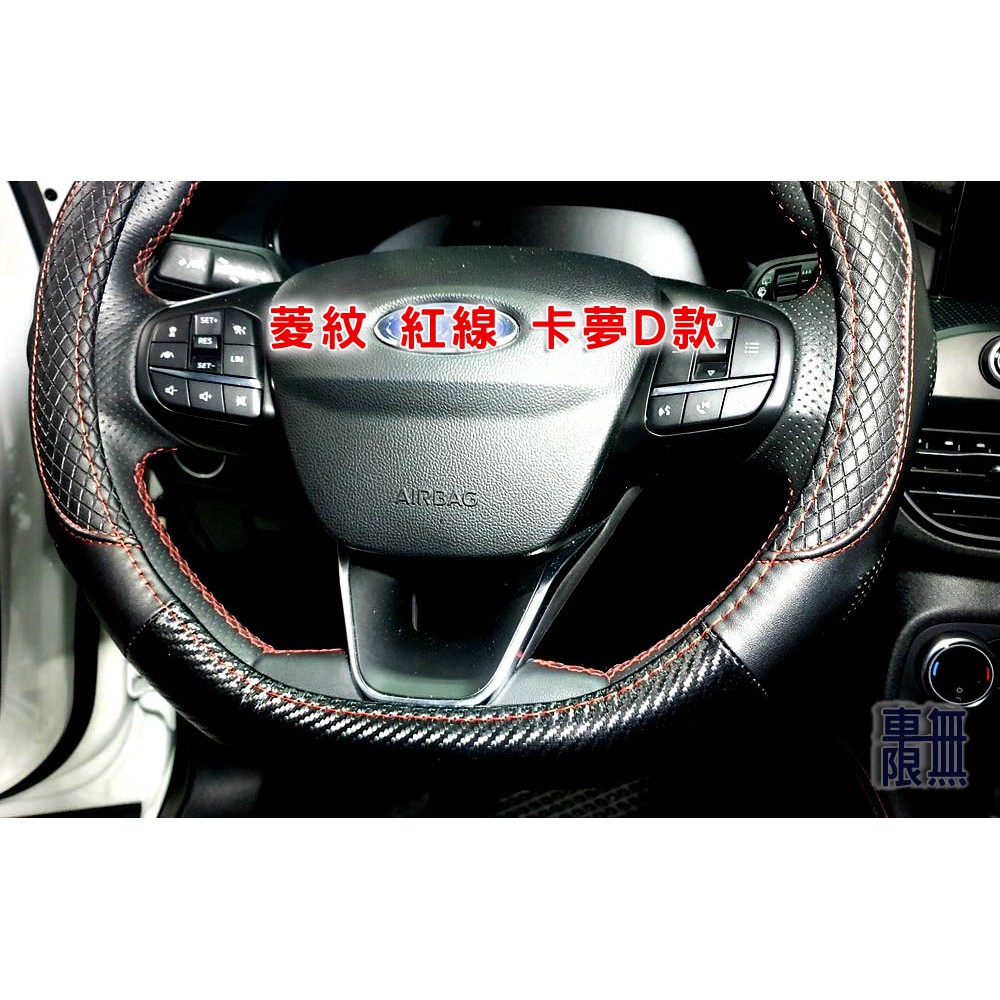 【菱紋款】全皮/碳纖方向盤皮套 / Focus MK2/MK3/MK4/Kuga/Fiesta 全黑/紅線/ 各車系通用