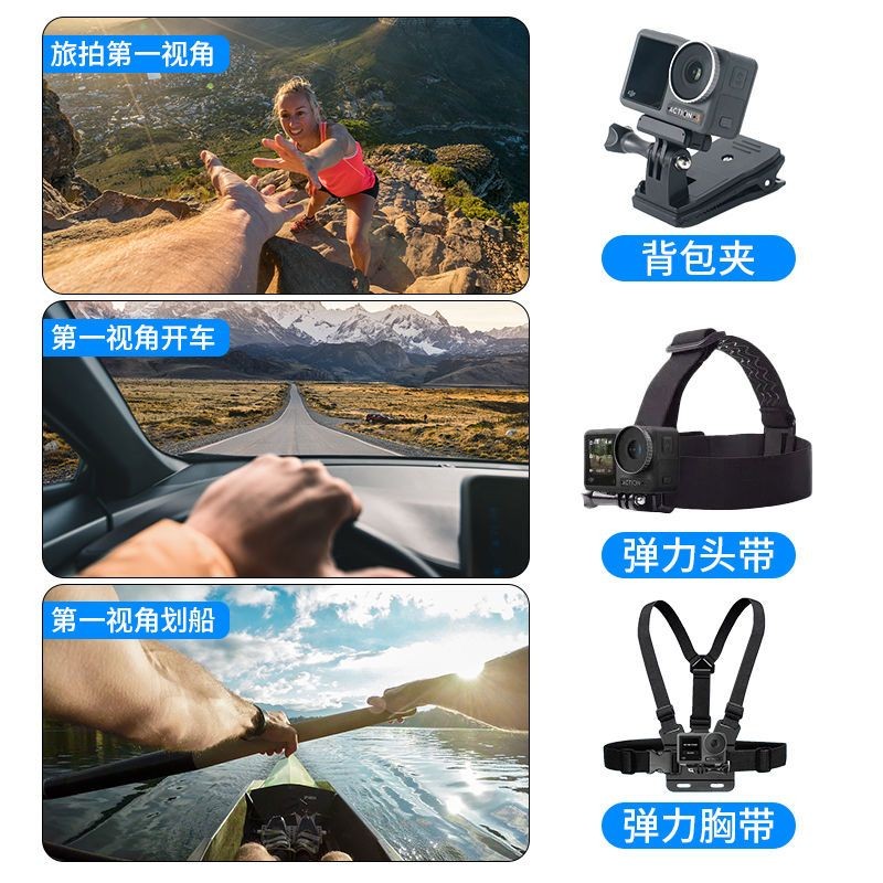 臺灣出貨 GoPro運動相機支架配件大疆action 影石X4/3胸帶頭帶支架背包夾 GoPro配件