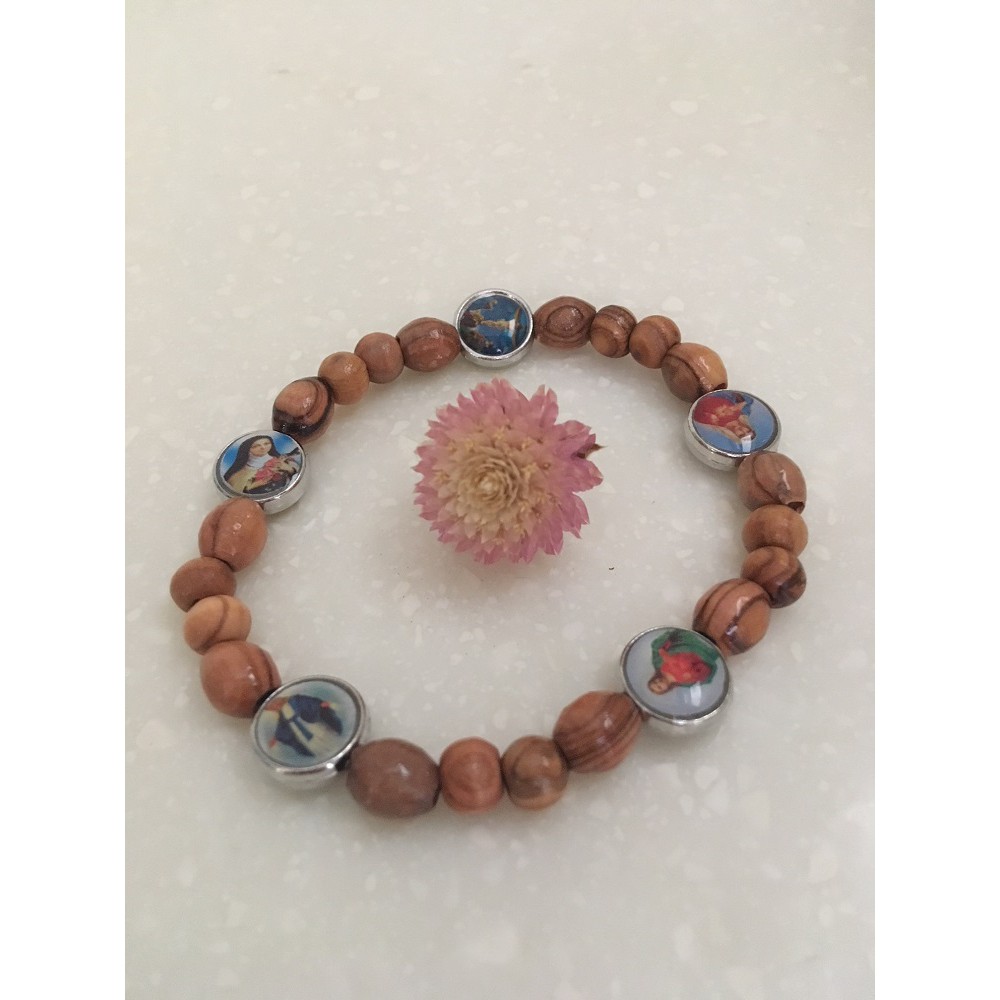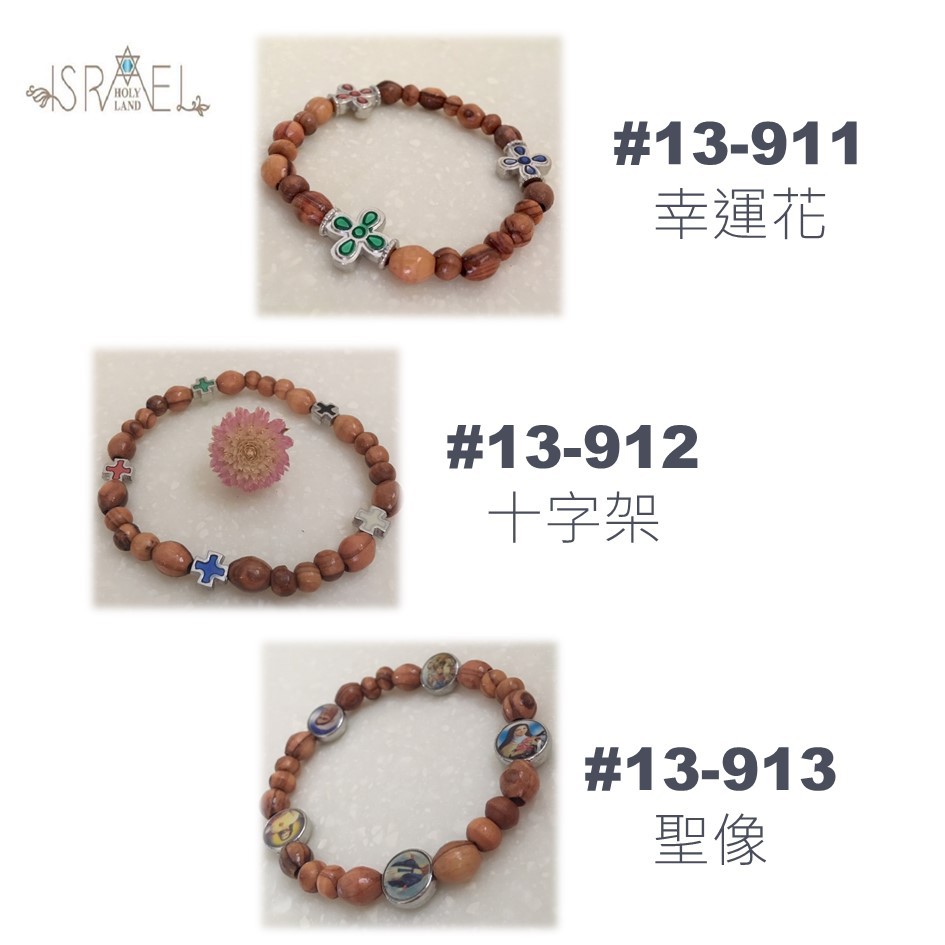 天主教聖物 以色列進口 聖母聖像 玫瑰念珠手環 (聖像/幸運花/十字架) #13-91