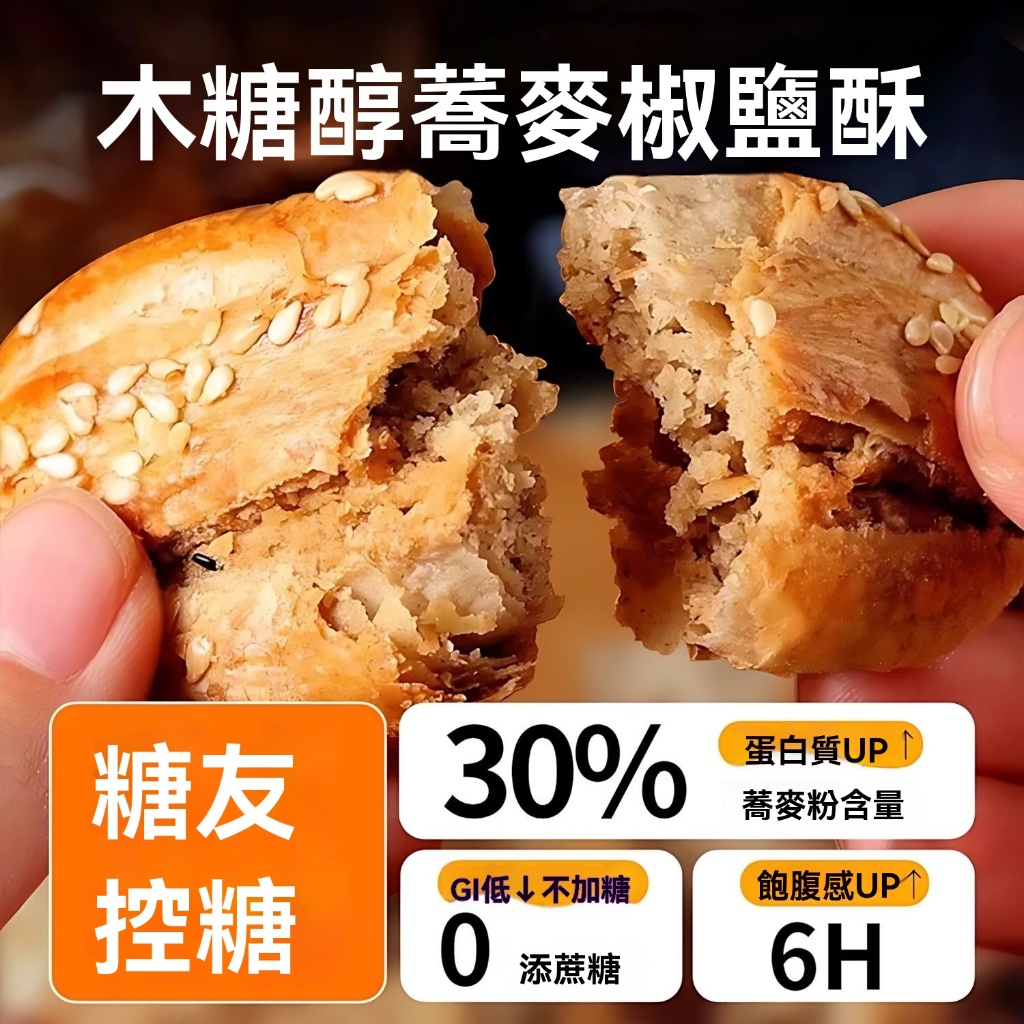 台灣現發🔥 無蔗糖椒鹽酥 荞麥椒鹽酥 15g正宗老式蕎麥餅 椒鹽味餅乾 無糖餅乾 曲奇餅乾 手工喬麥餅幹 無添加蔗糖食品