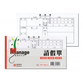 萬國 25410 請假單 195㎜*106㎜ 39張