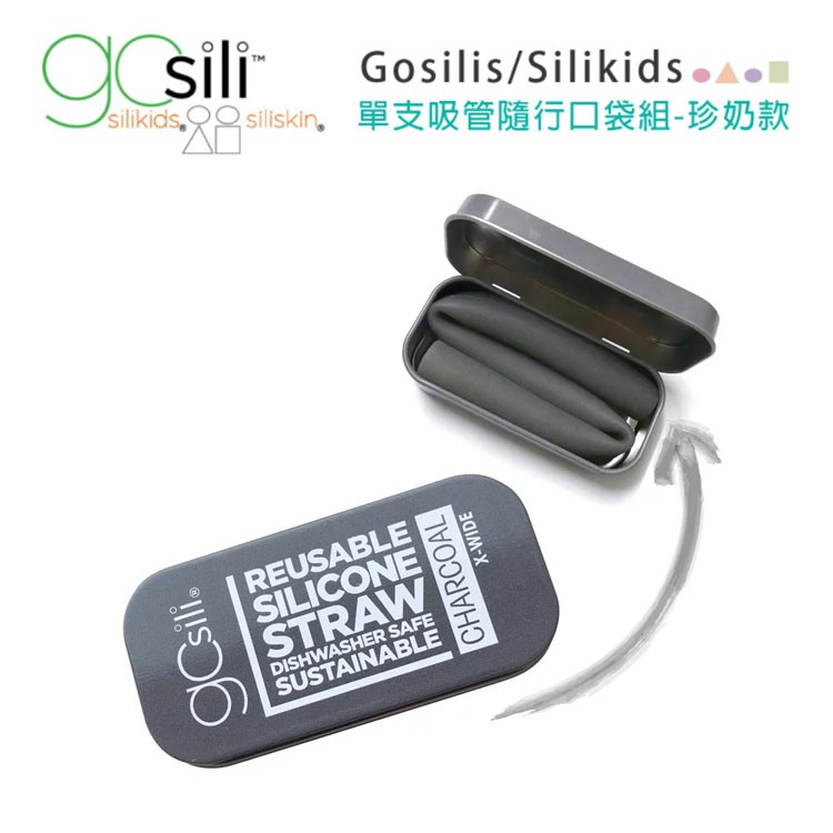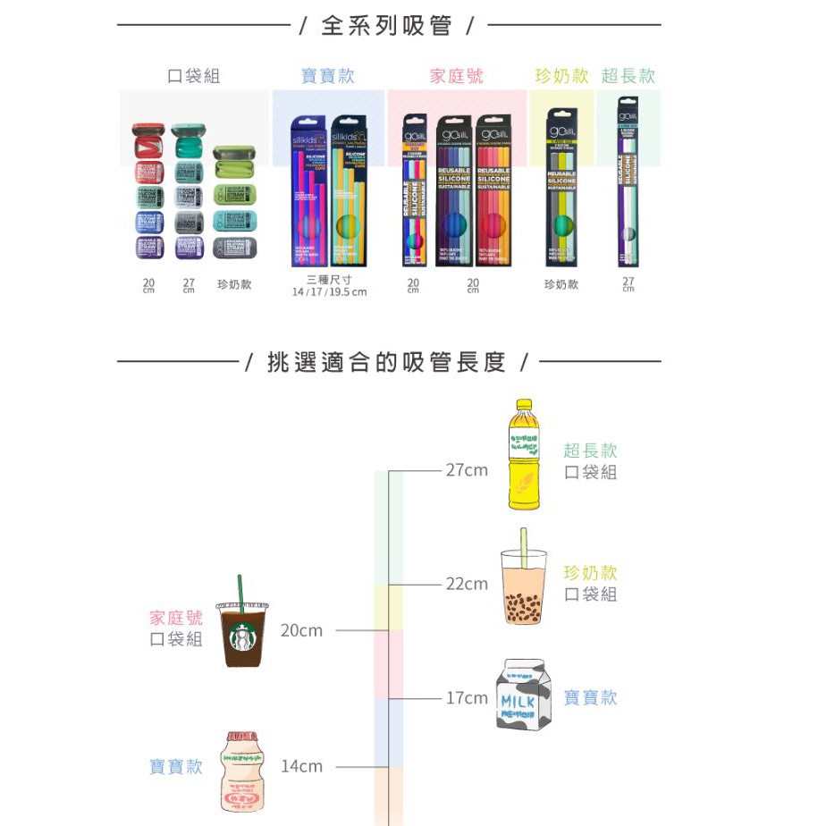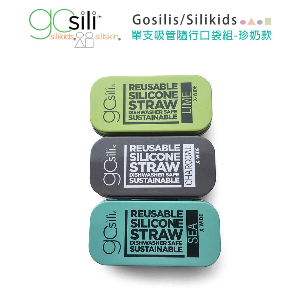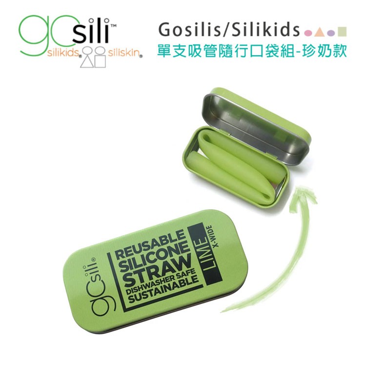 【美國 gosili/silikids】珍奶款 單支吸管隨行口袋組(3色可選)(總代理公司貨) 22cm