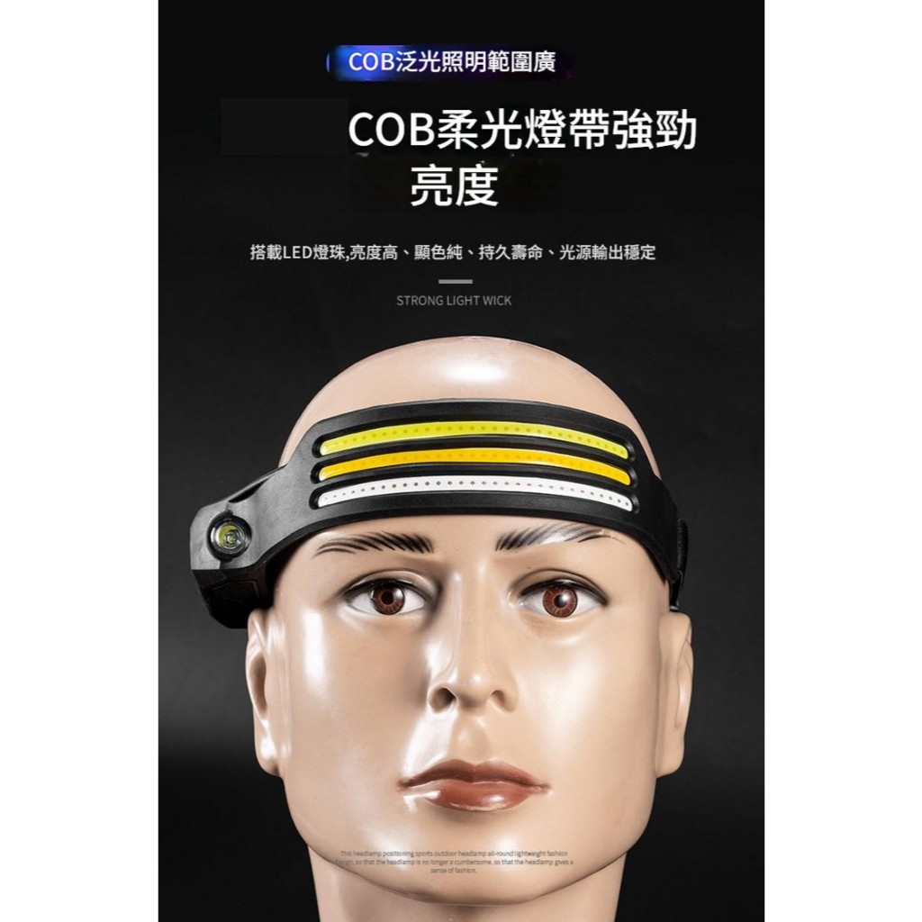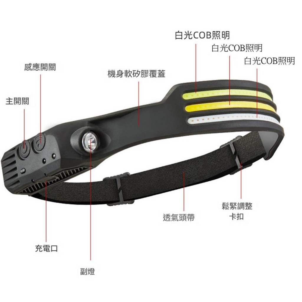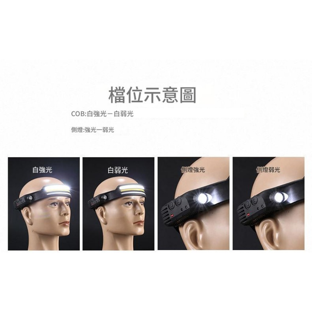 【台灣現貨】超廣角COB頭燈 LED 感應頭燈長續航 頭戴燈充電式頭燈 工作燈戶外防水 露營頭燈Type-C充電 白光