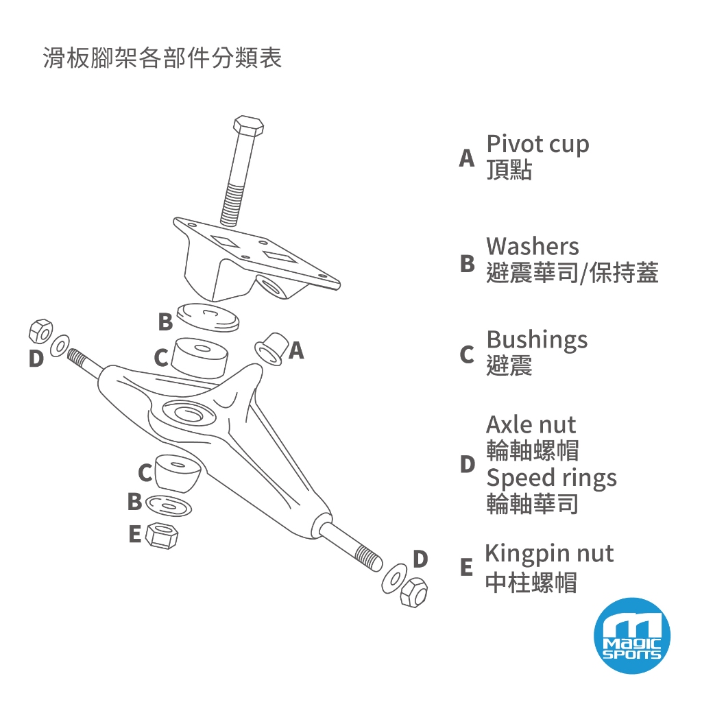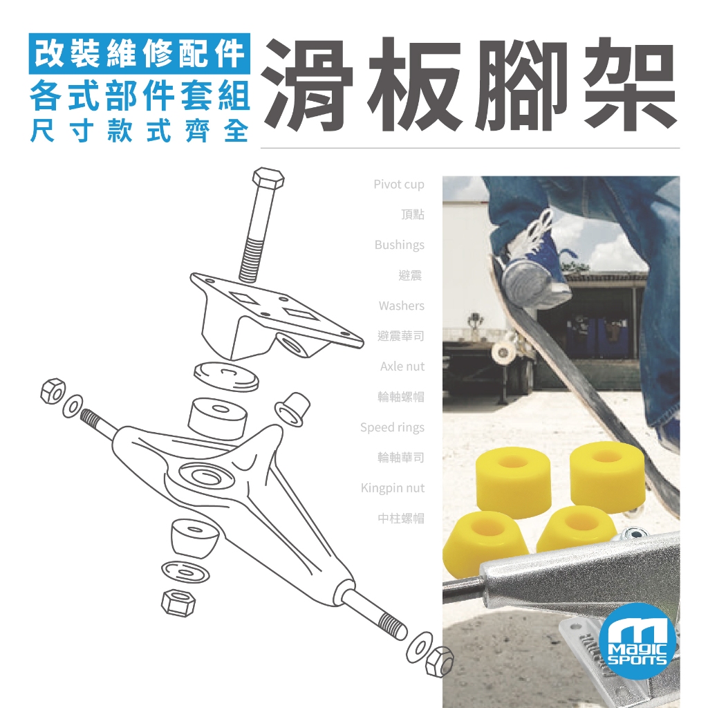 【第三世界】滑板輪架 腳架 支架 維修零件 滑板底座 頂點 螺絲 華司 中柱螺絲 Bushings Pivot Cup