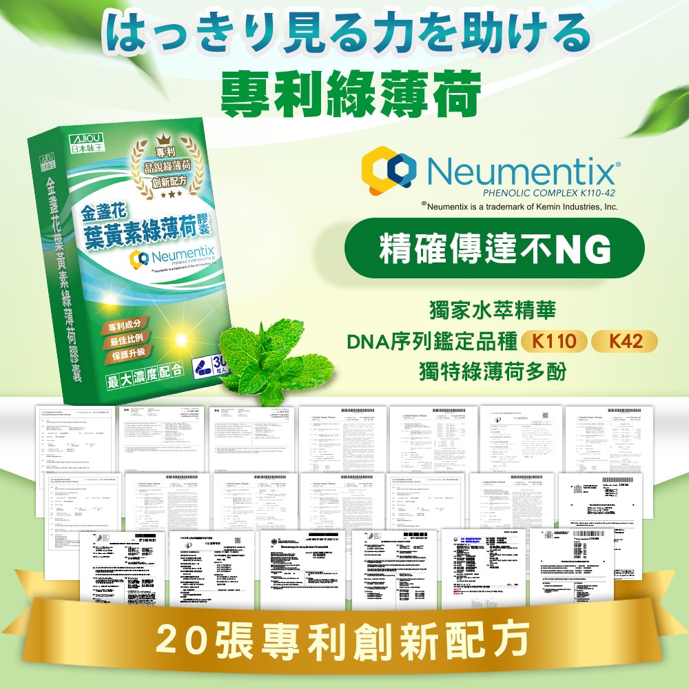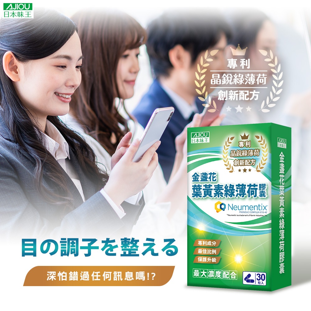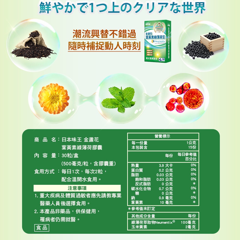日本味王 專利金盞花葉黃素綠薄荷膠囊30粒(游離型/黃金比例/玉米黃素/蝦紅素/花青素)【官方直營店】