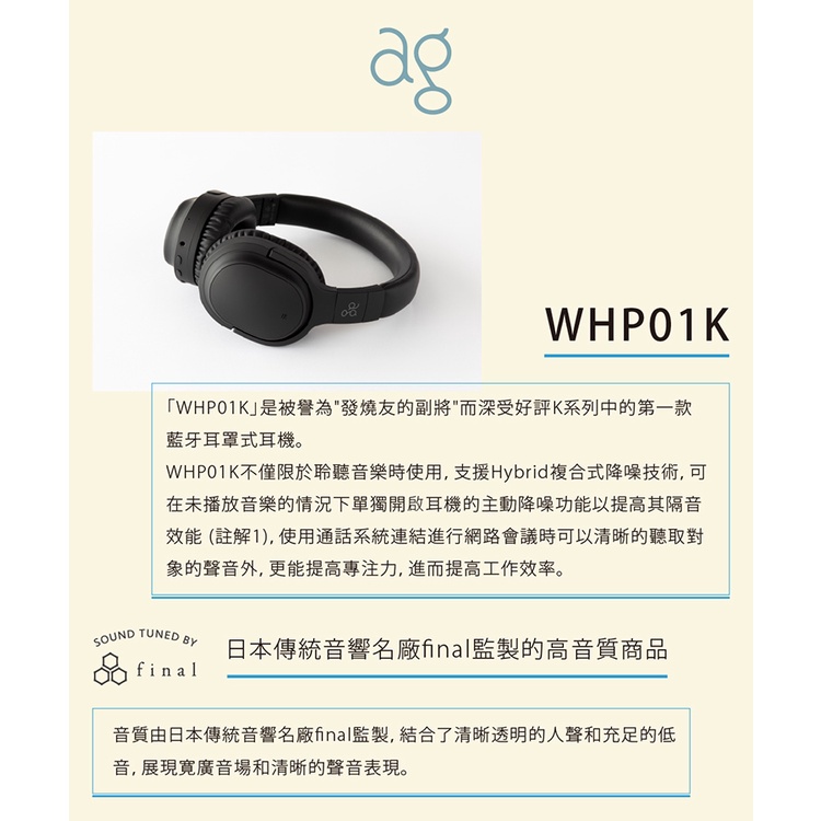 日本ag WHP01K 藍牙降噪耳罩式耳機