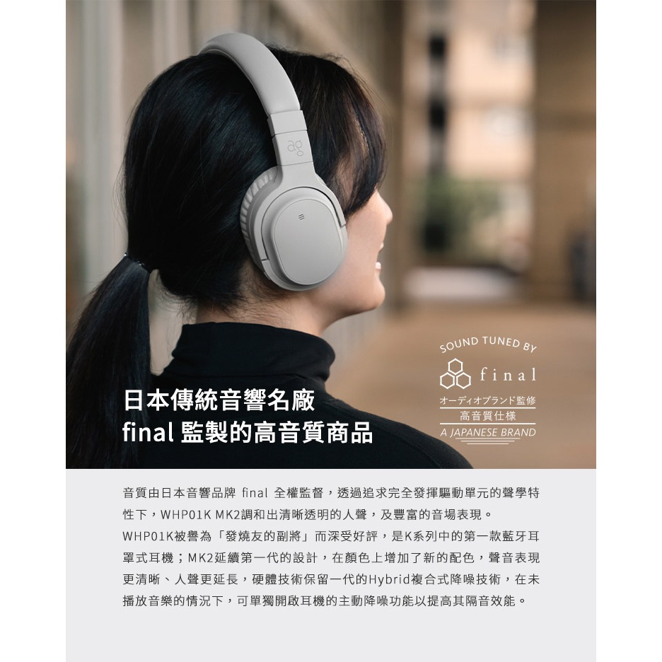 日本ag WHP01K MK2 藍牙降噪耳罩式耳機
