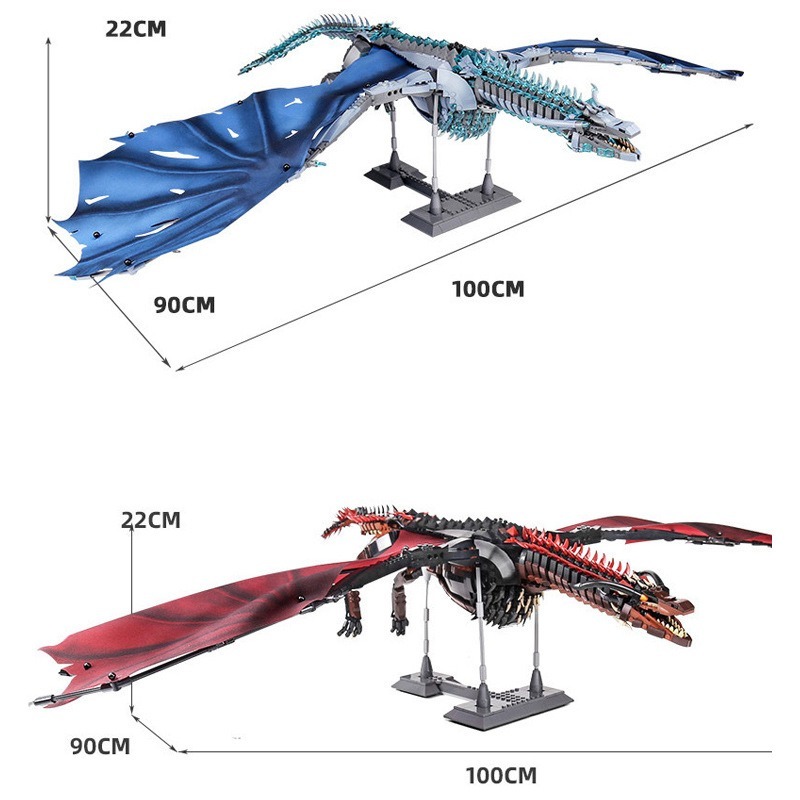 ✨Roland✨『冰霜巨龍韋賽利昂 火焰巨龍卓耿 巨型飛龍積木』權力遊戲冰與火之歌 雷爾K90 拼裝玩具模型 兼容樂高