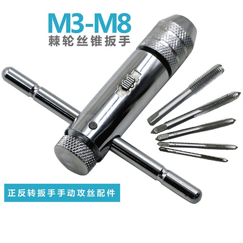 熱賣 可調棘輪手用絲錐扳手 絲錐套裝組(M3-M8絲錐)攻牙器 攻絲器 鑽孔頭