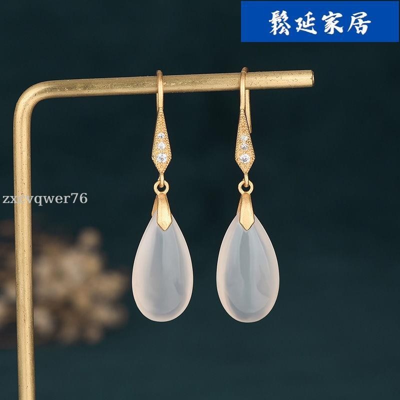 ✨台灣出貨 熱銷 免運新中式耳環氣質天然水滴耳墜925銀半透明古典旗袍復古中國風配飾