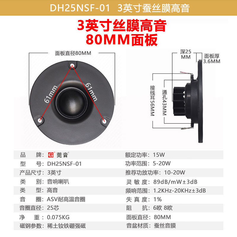喇叭 莞音2寸2.5寸3寸4寸高音喇叭 蠶絲音膜 高音質 高保真 雙磁 自然清晰細膩耐聽 hifi高音 音响喇叭 喇叭