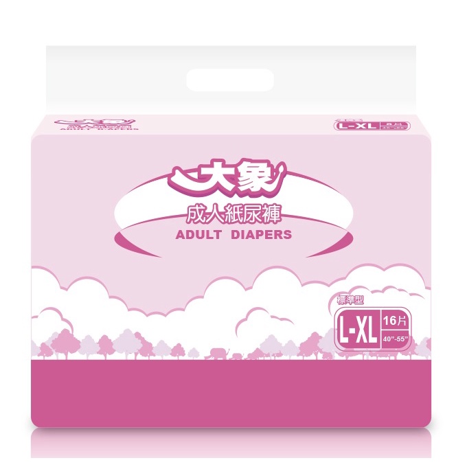 大象成人紙尿褲 L-XL(40"-55")標準型 16片/6包/箱 非偏遠地區整箱出貨